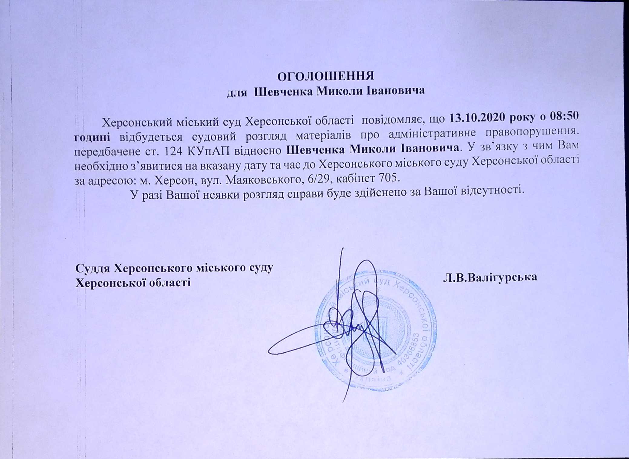 ОГОЛОШЕННЯ ПРО ВИКЛИК ДО СУДУ