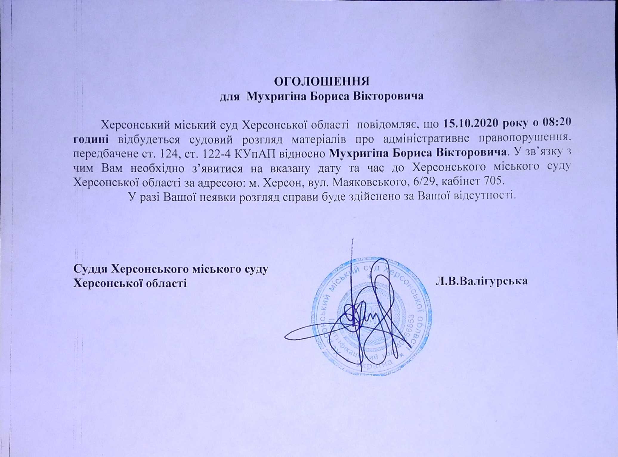 ОГОЛОШЕННЯ для Мухригіна Бориса Вікторовича