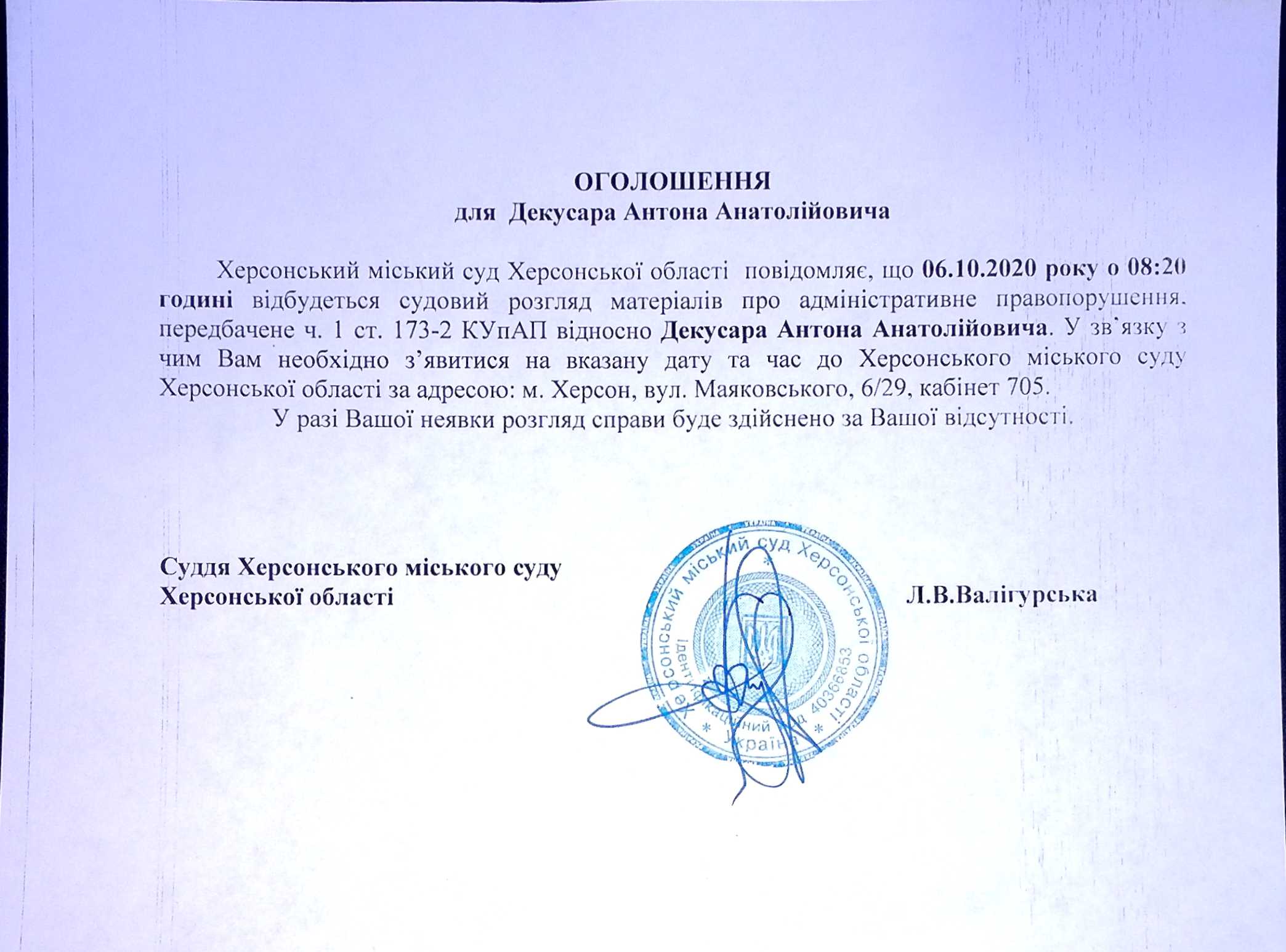ОГОЛОШЕННЯ для Декусара Антона Анатолійовича