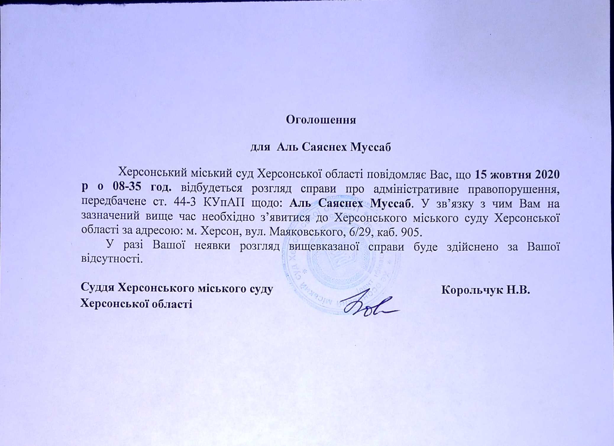ОГОЛОШЕННЯ для Аль Саяснех Муссаб