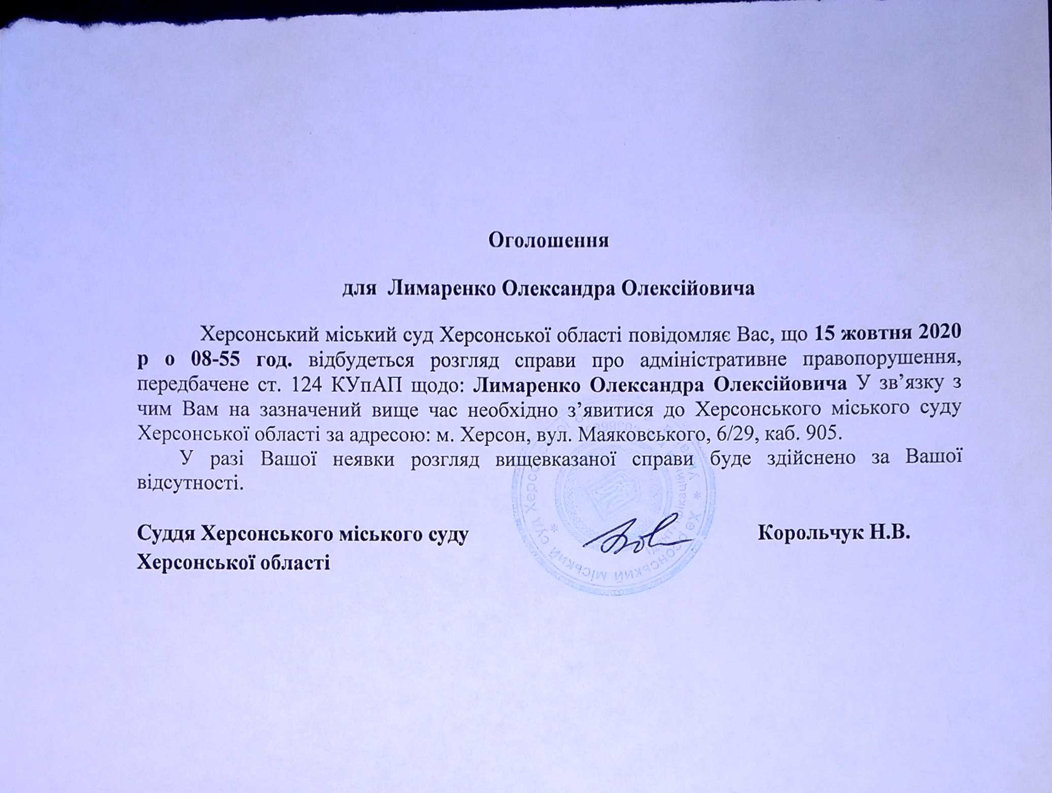 ОГОЛОШЕННЯ для Лимаренко Олександра Олексійовича