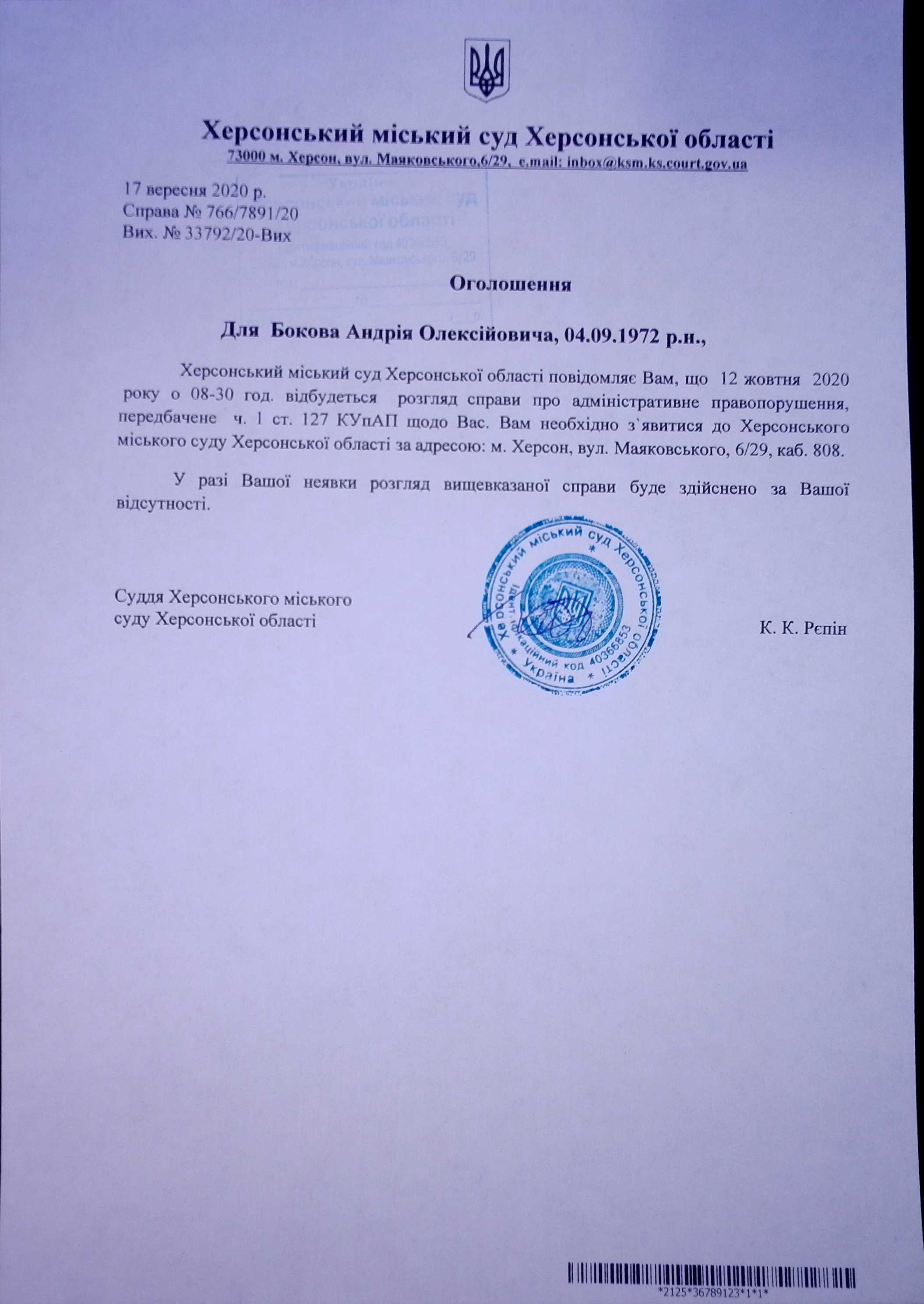 ОГОЛОШЕННЯ для Бокова Андрія Олексійовича