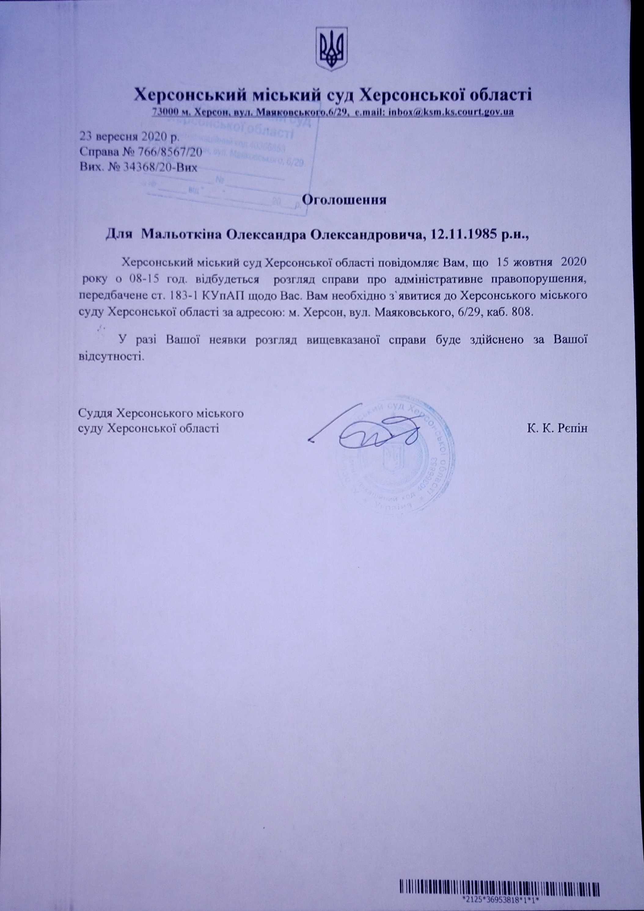 ОГОЛОШЕННЯ для Мальоткіна Олександра Олександровича