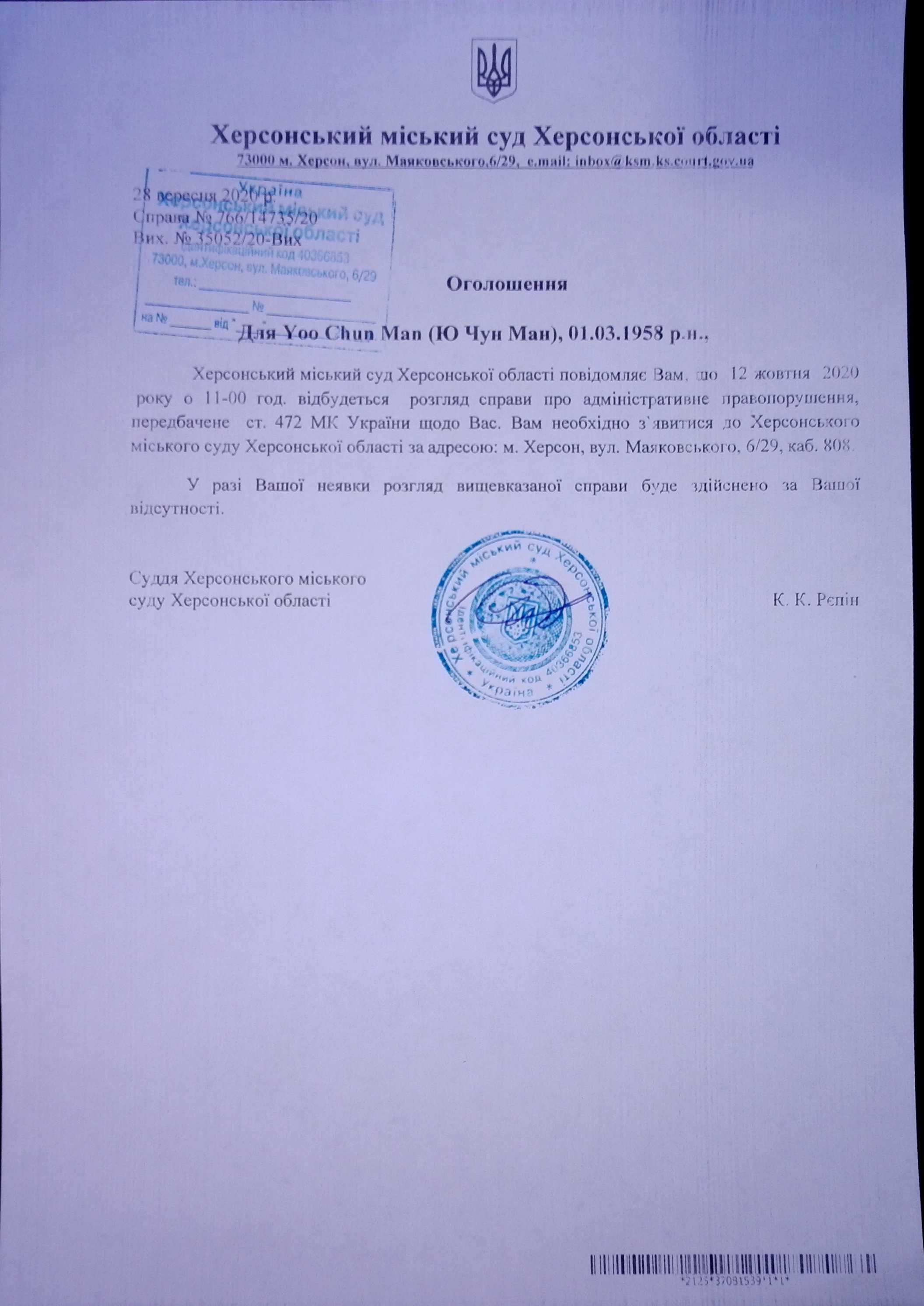 ОГОЛОШЕННЯ ПРО ВИКЛИК ДО СУДУ