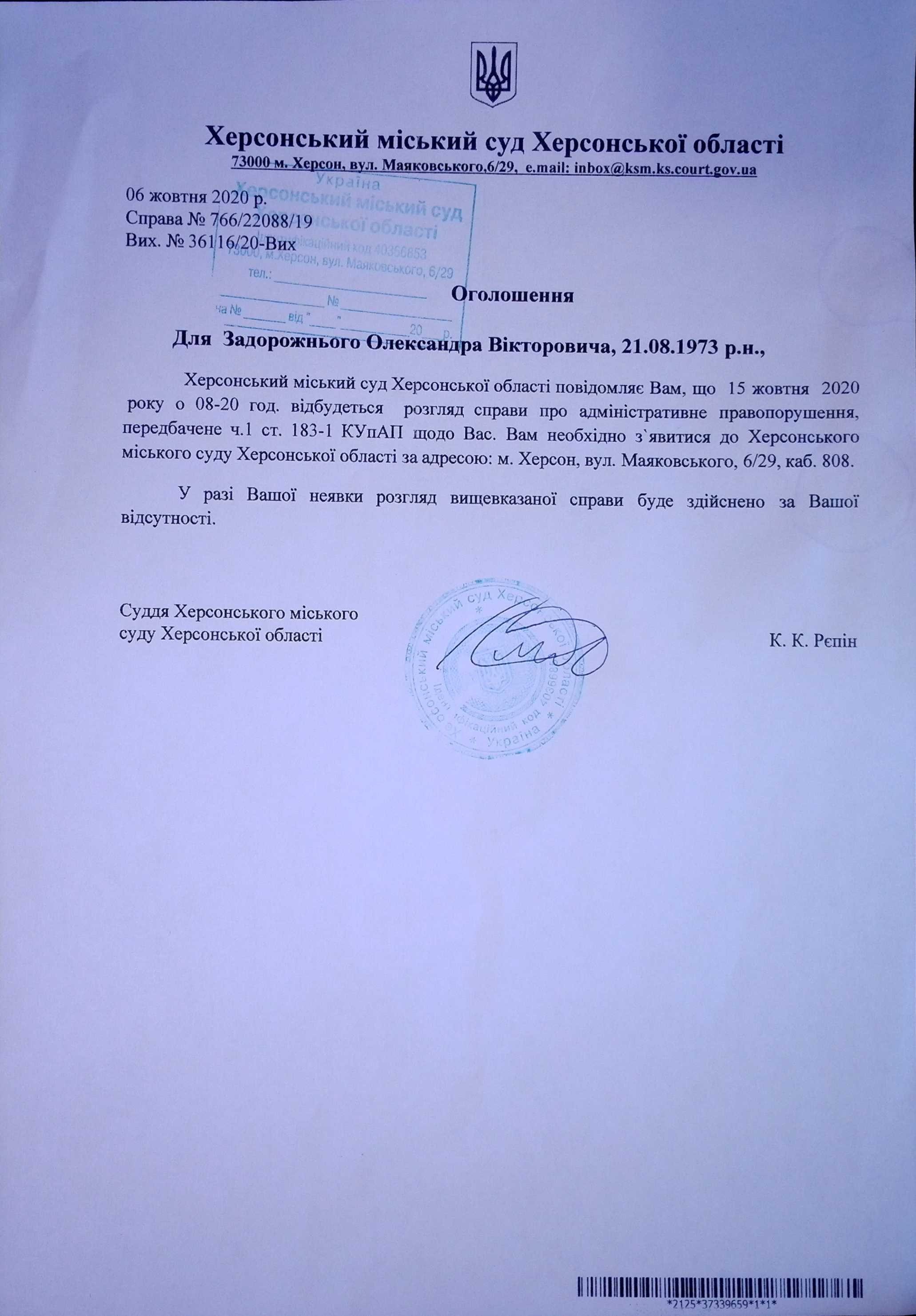 ОГОЛОШЕННЯ для Задорожнього Олександра Вікторовича