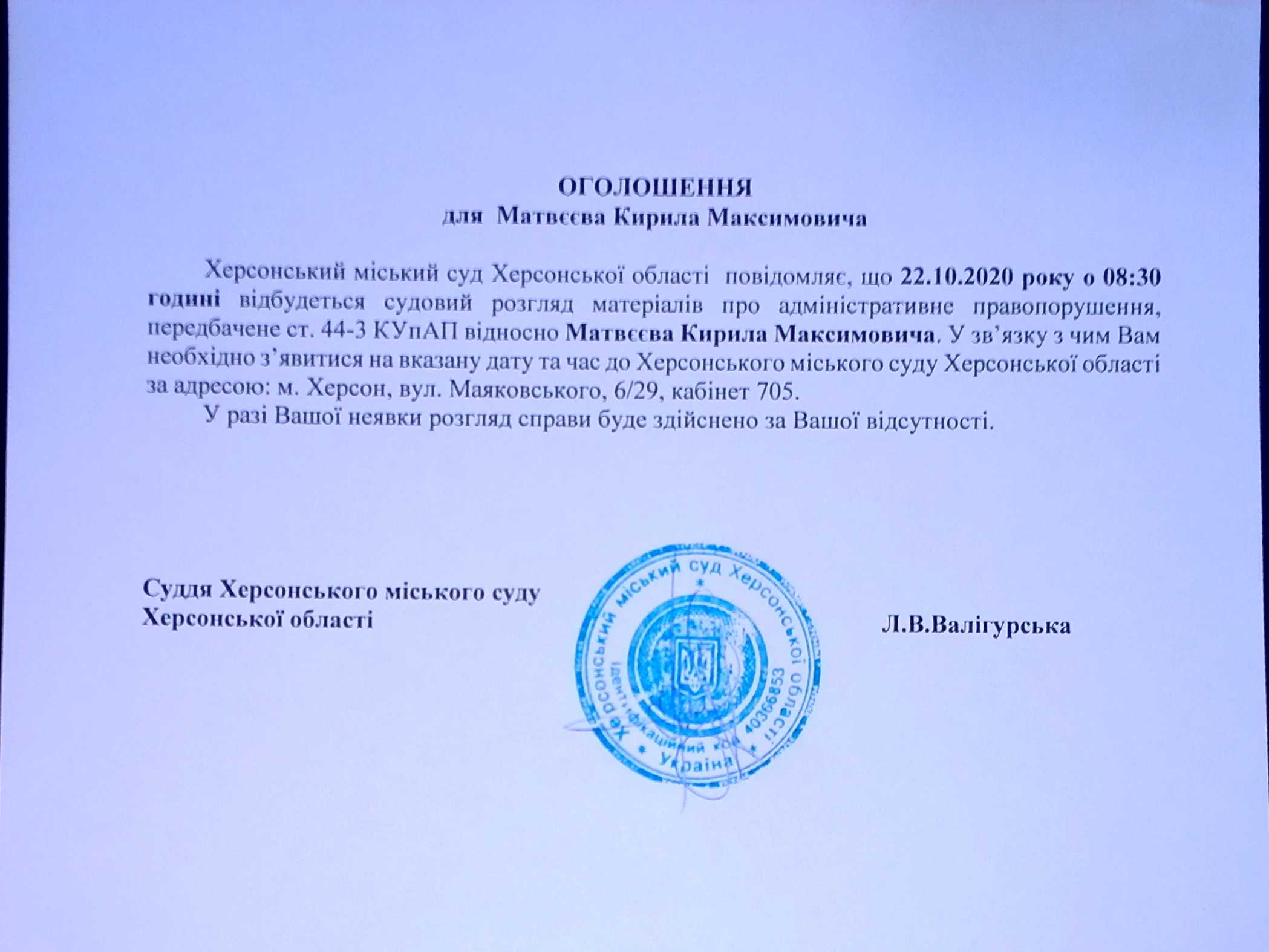 ОГОЛОШЕННЯ для Матвєєва Кирила Максимовича