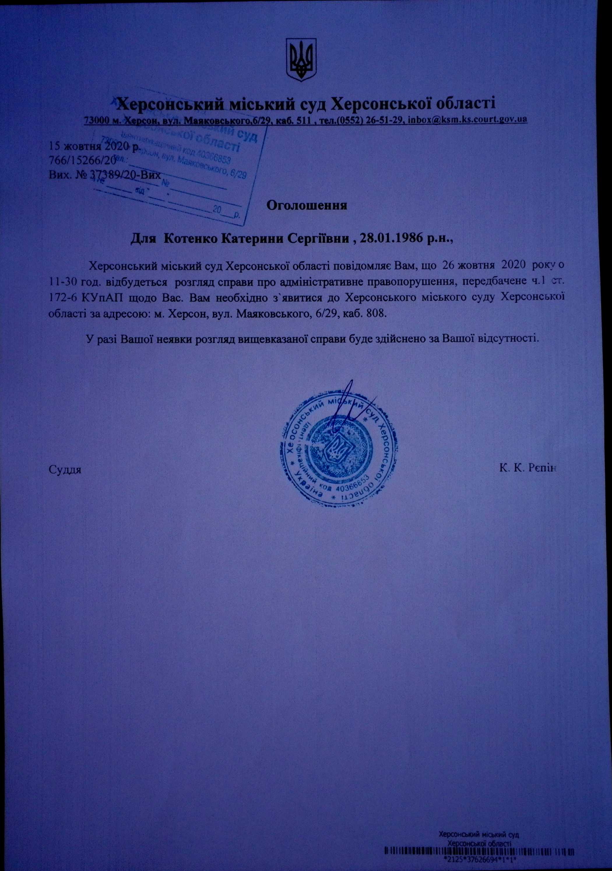 ОГОЛОШЕННЯ для Котенко Катерини Сергіївни