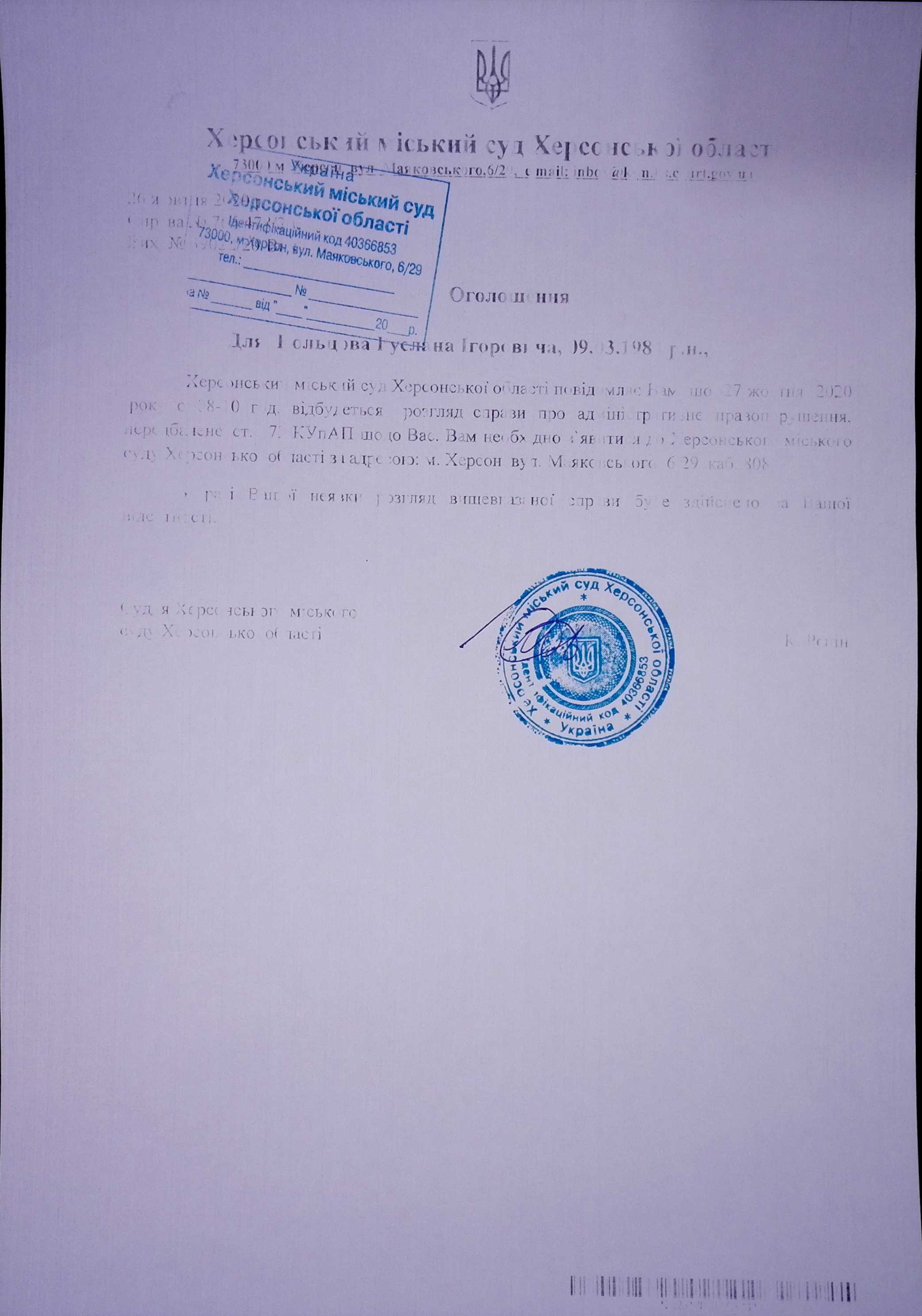 ОГОЛОШЕННЯ для Гольцова Руслана Ігоровича