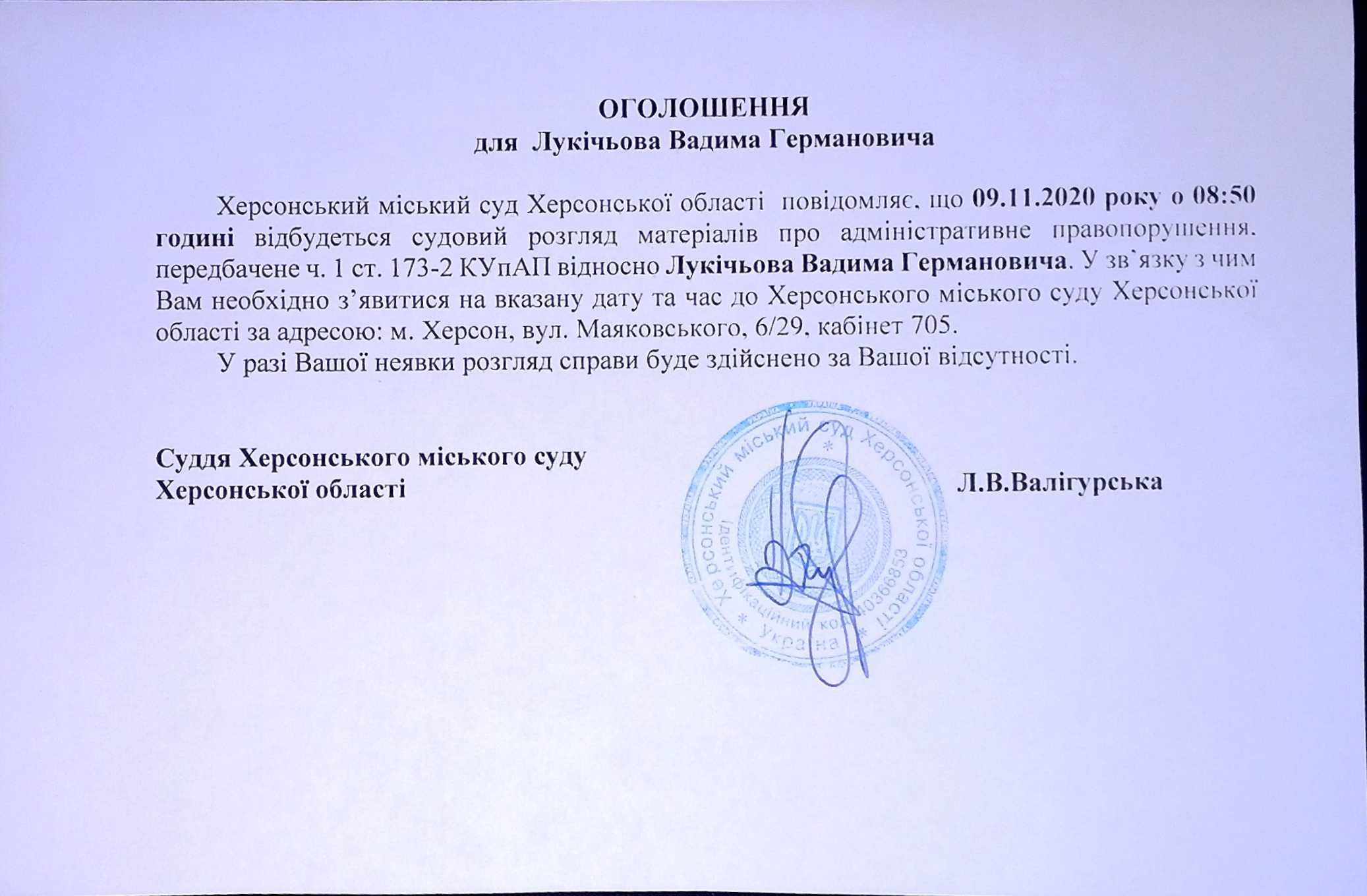 ОГОЛОШЕННЯ для Лукічьова Вадима Германовича