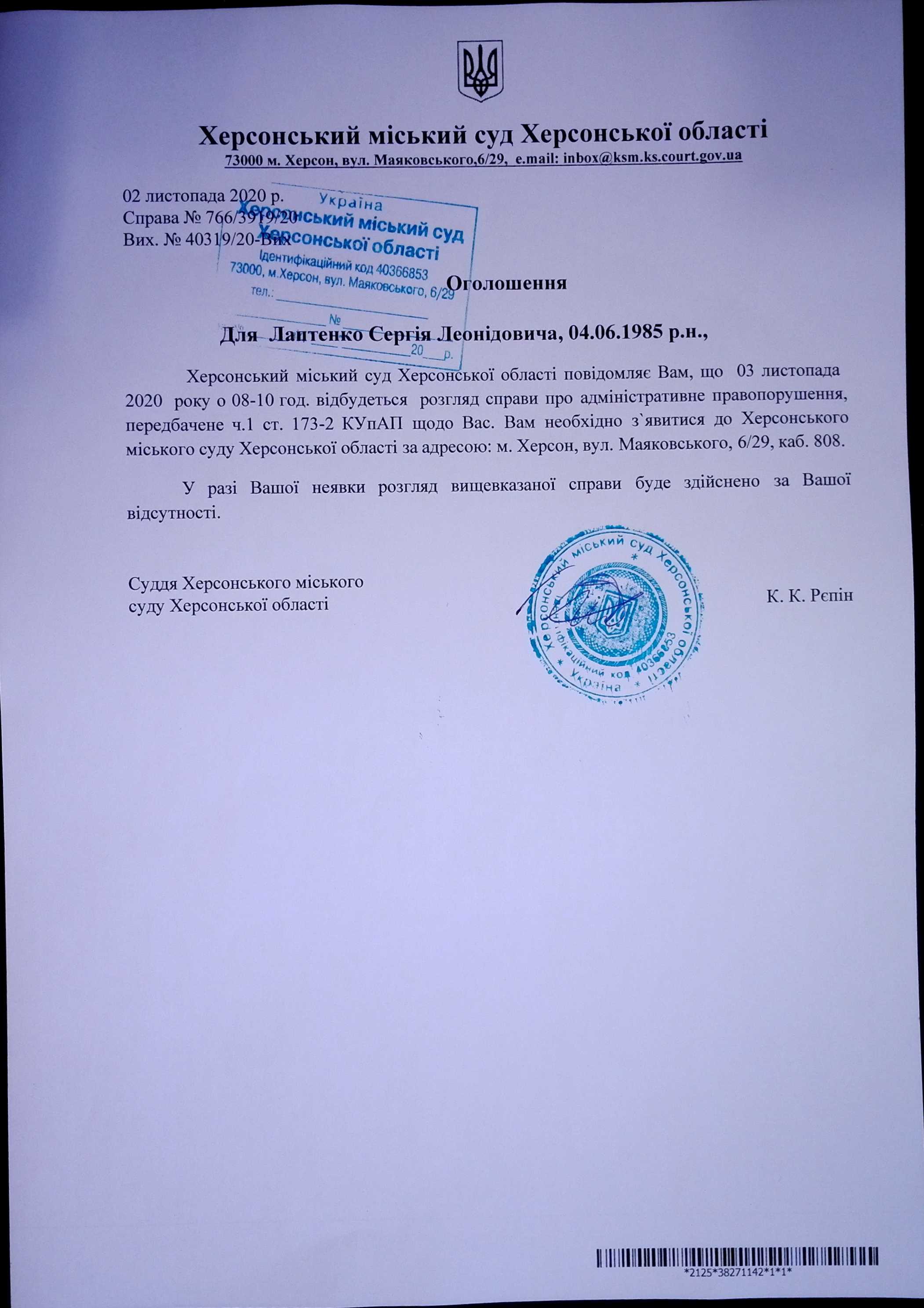 ОГОЛОШЕННЯ для Лаптенко Сергія Леонідовича
