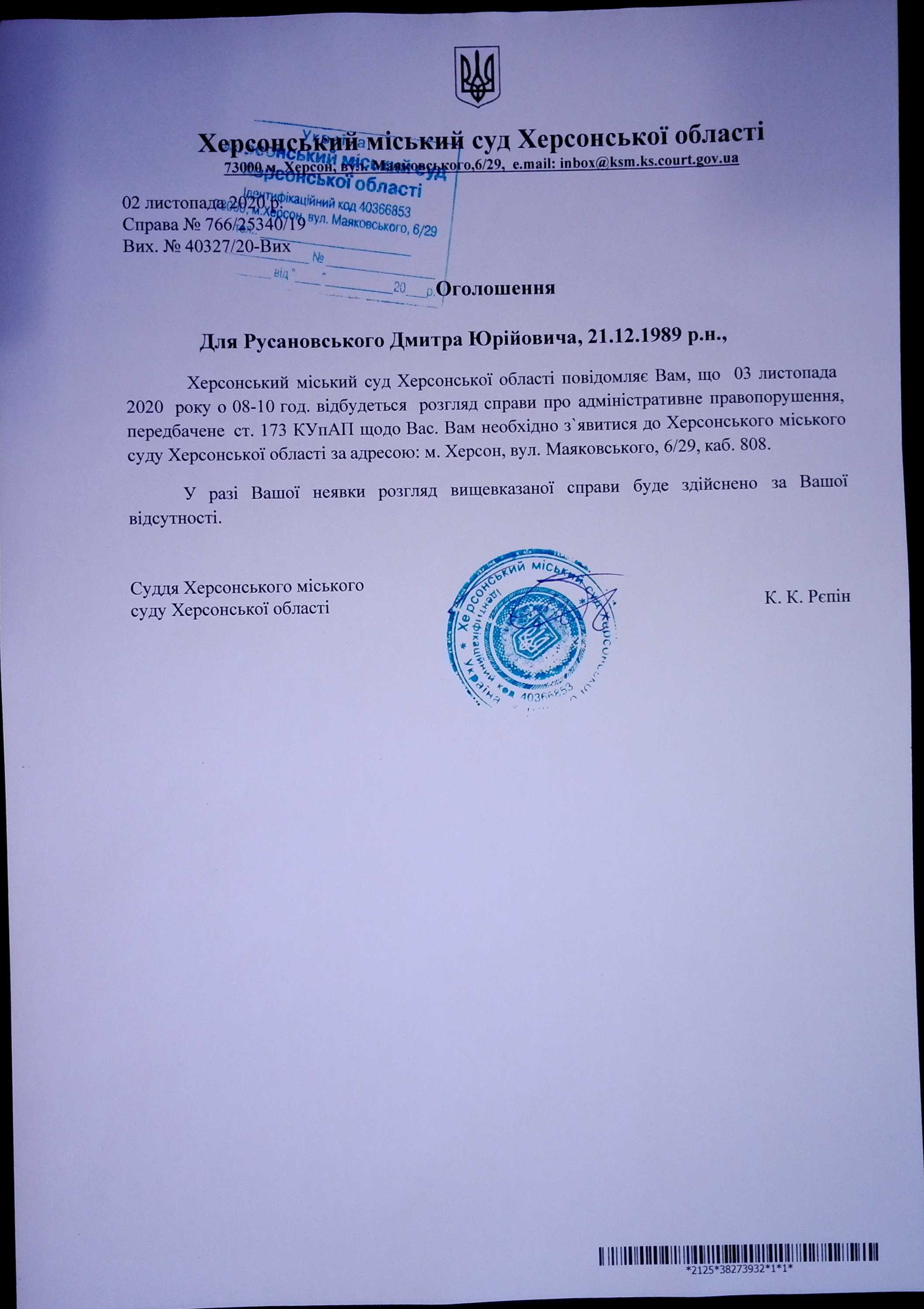 ОГОЛОШЕННЯ для Русановського Дмитра Юрійовича