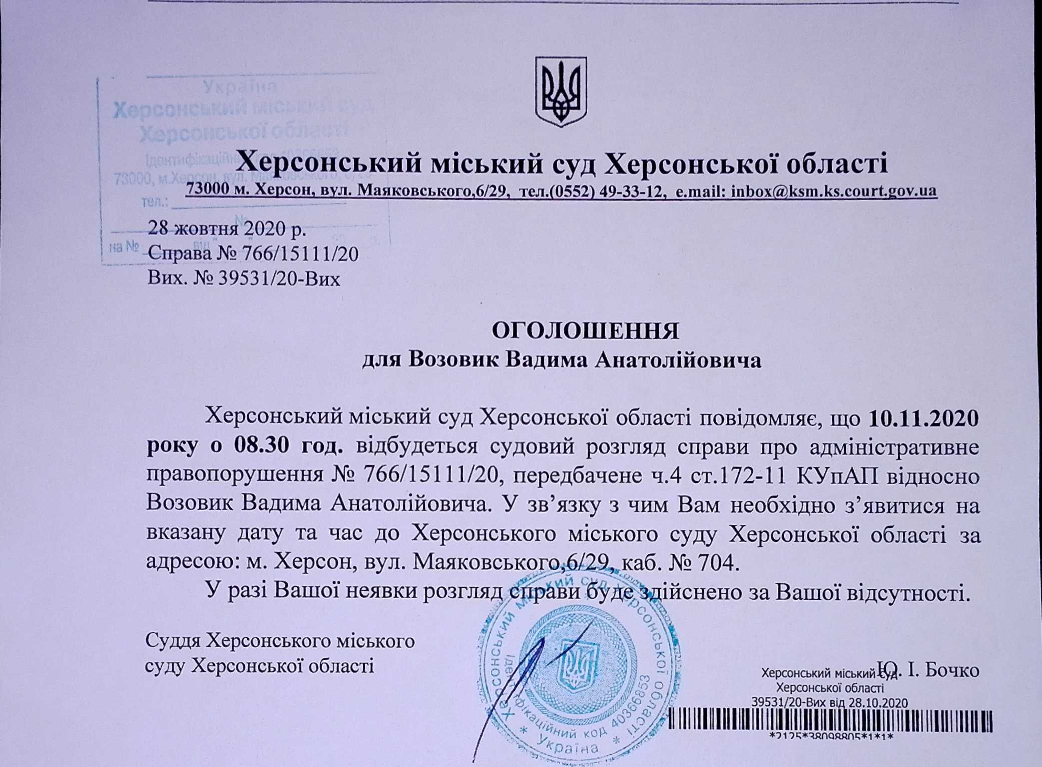 ОГОЛОШЕННЯ ПРО ВИКЛИК ДО СУДУ