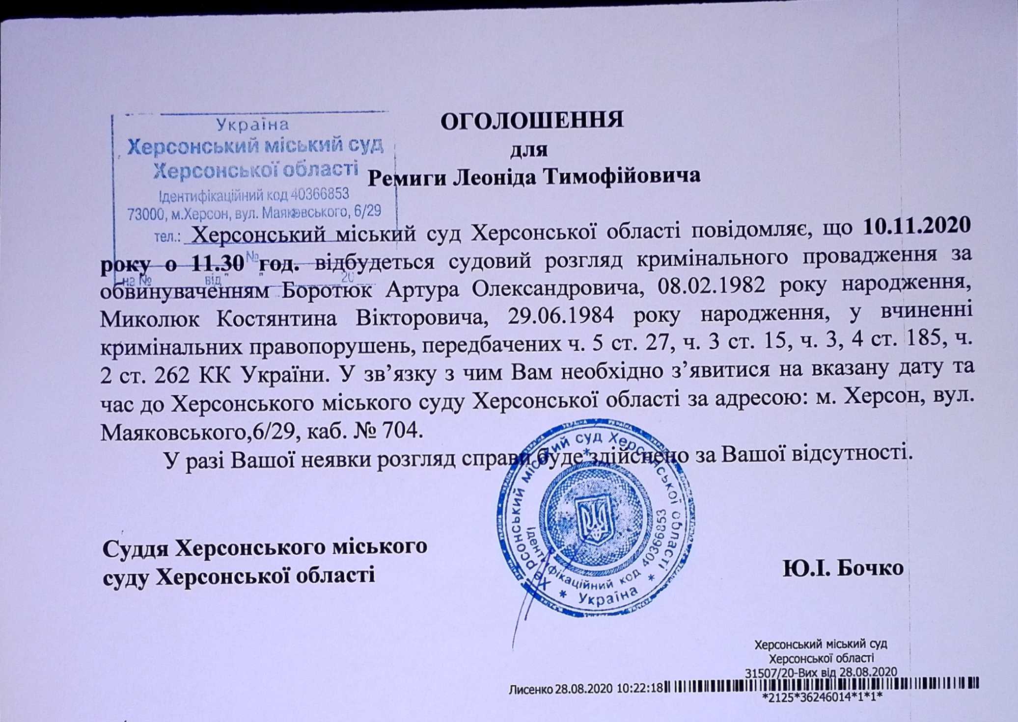 ОГОЛОШЕННЯ ПРО ВИКЛИК ДО СУДУ