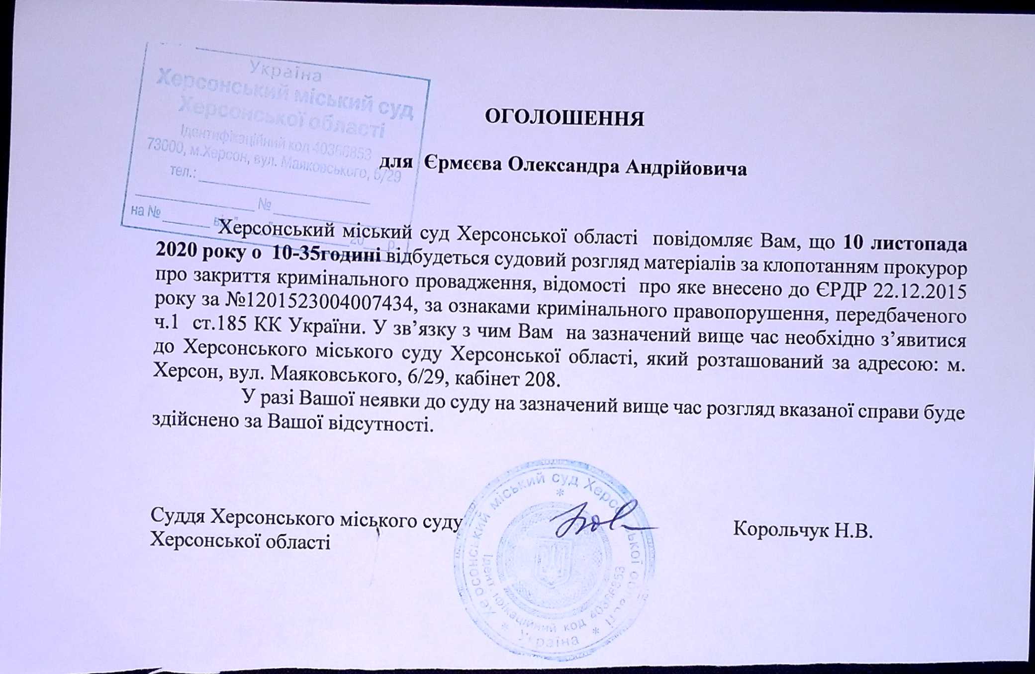ОГОЛОШЕННЯ для Єрмєєва Олександра Андрійовича