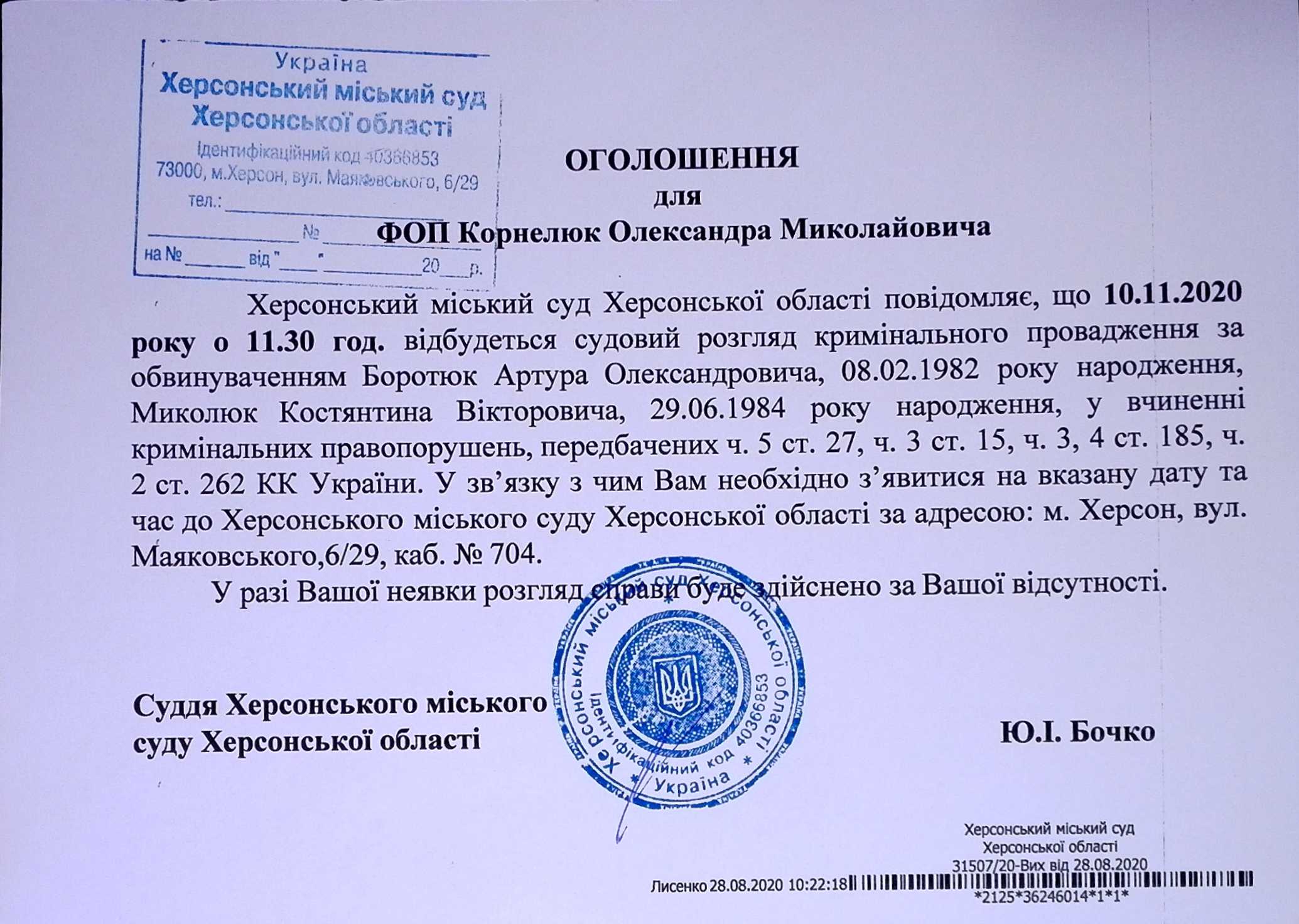 ОГОЛОШЕННЯ ПРО ВИКЛИК ДО СУДУ