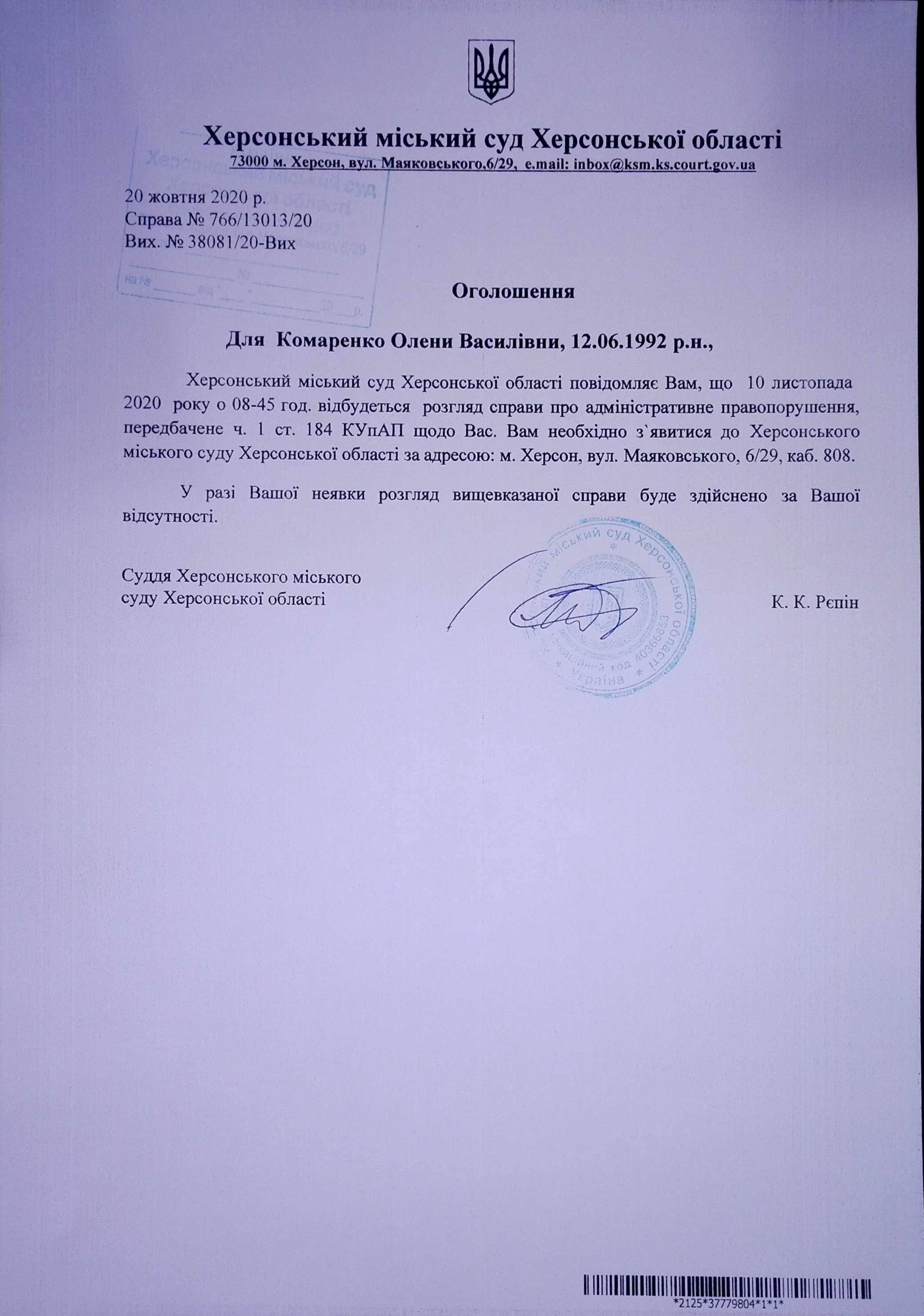 ОГОЛОШЕННЯ ПРО ВИКЛИК ДО СУДУ