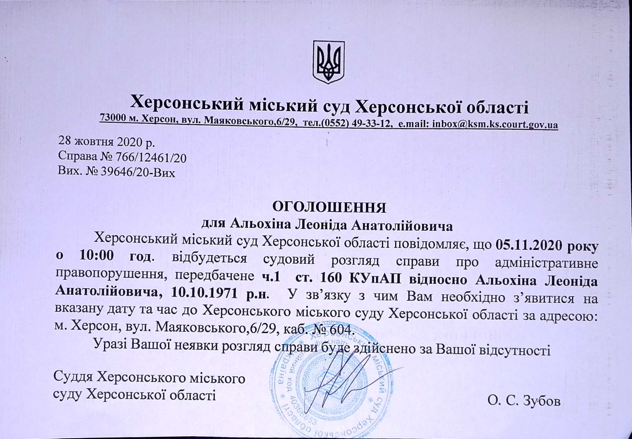 ОГОЛОШЕННЯ для Альохіна Леоніда Анатолійовича