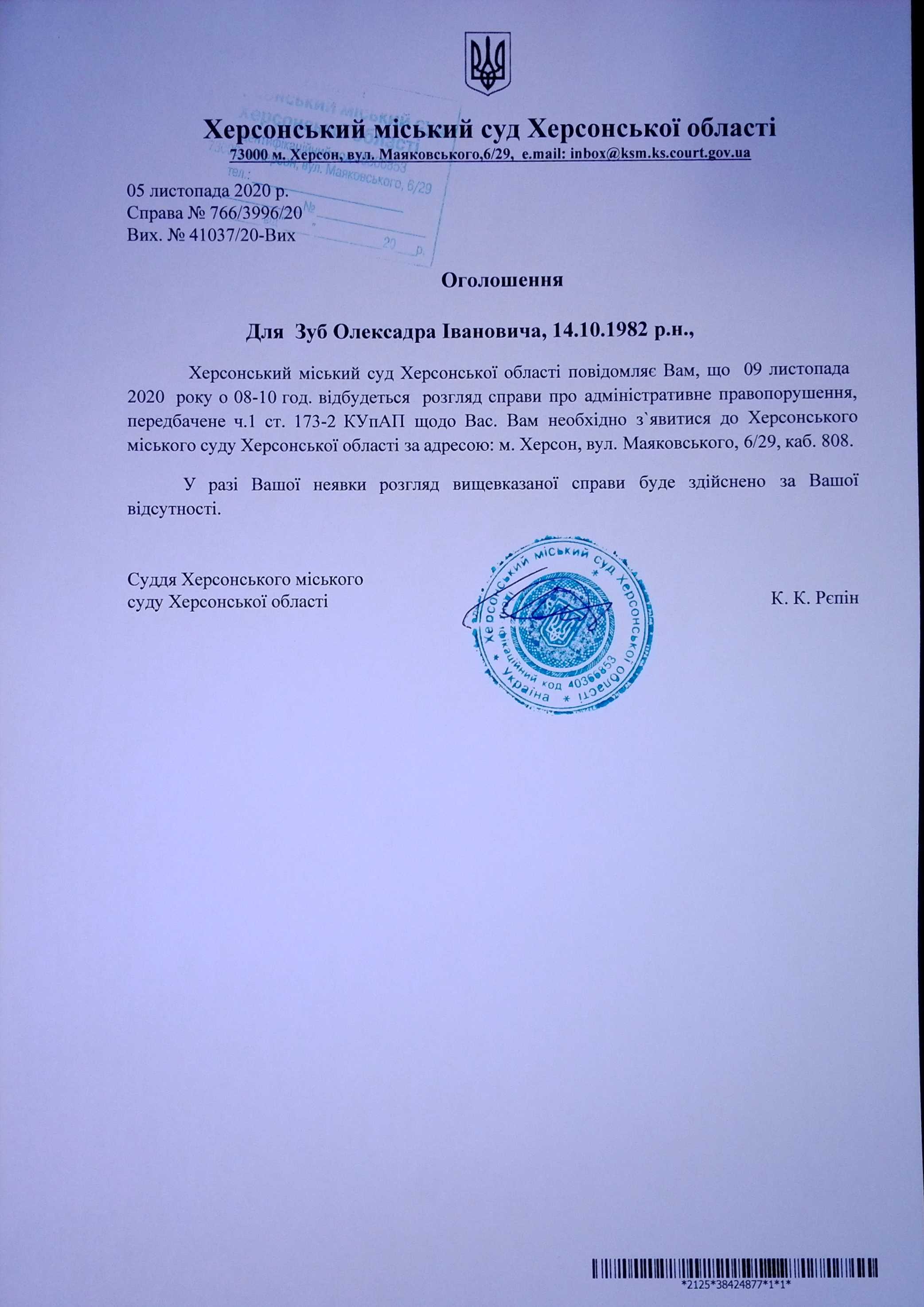 ОГОЛОШЕННЯ для Зуб Олександра Івановича