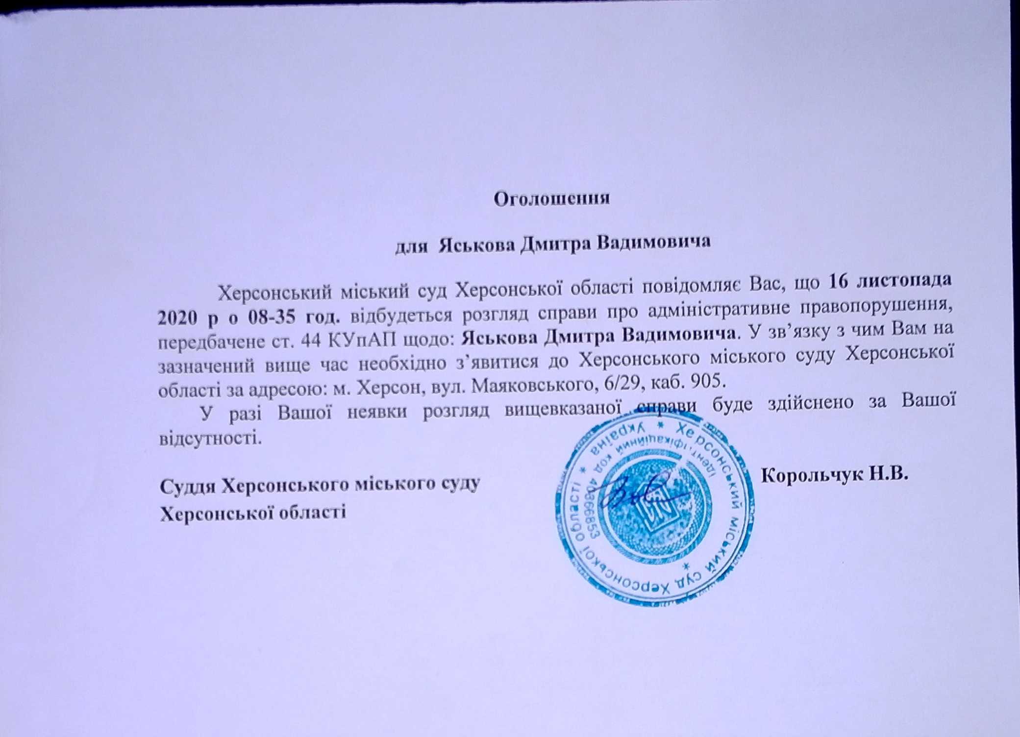 ОГОЛОШЕННЯ для Яськова Дмитра Вадимовича