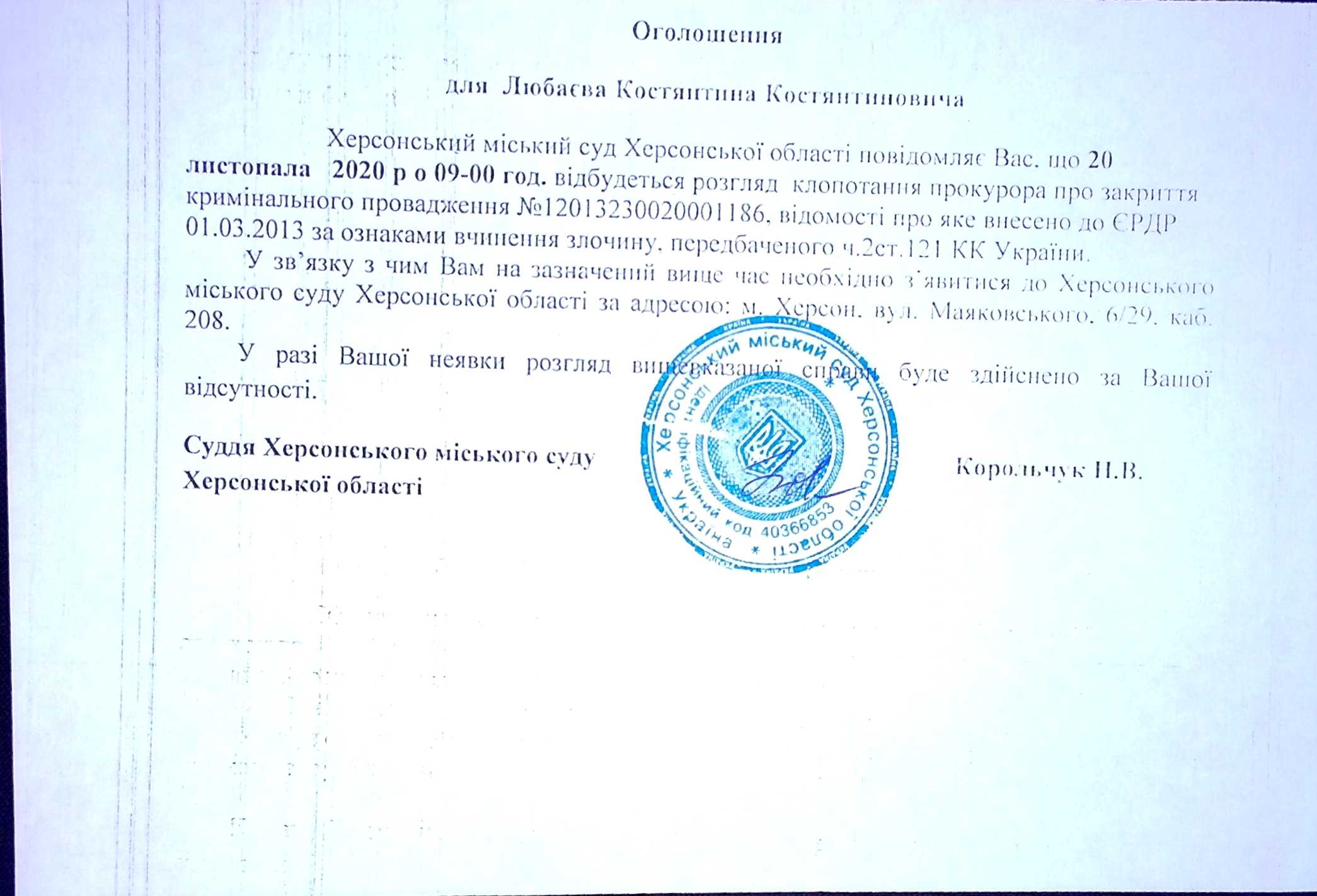 ОГОЛОШЕННЯ для Любаєва Костянтина Костянтиновича