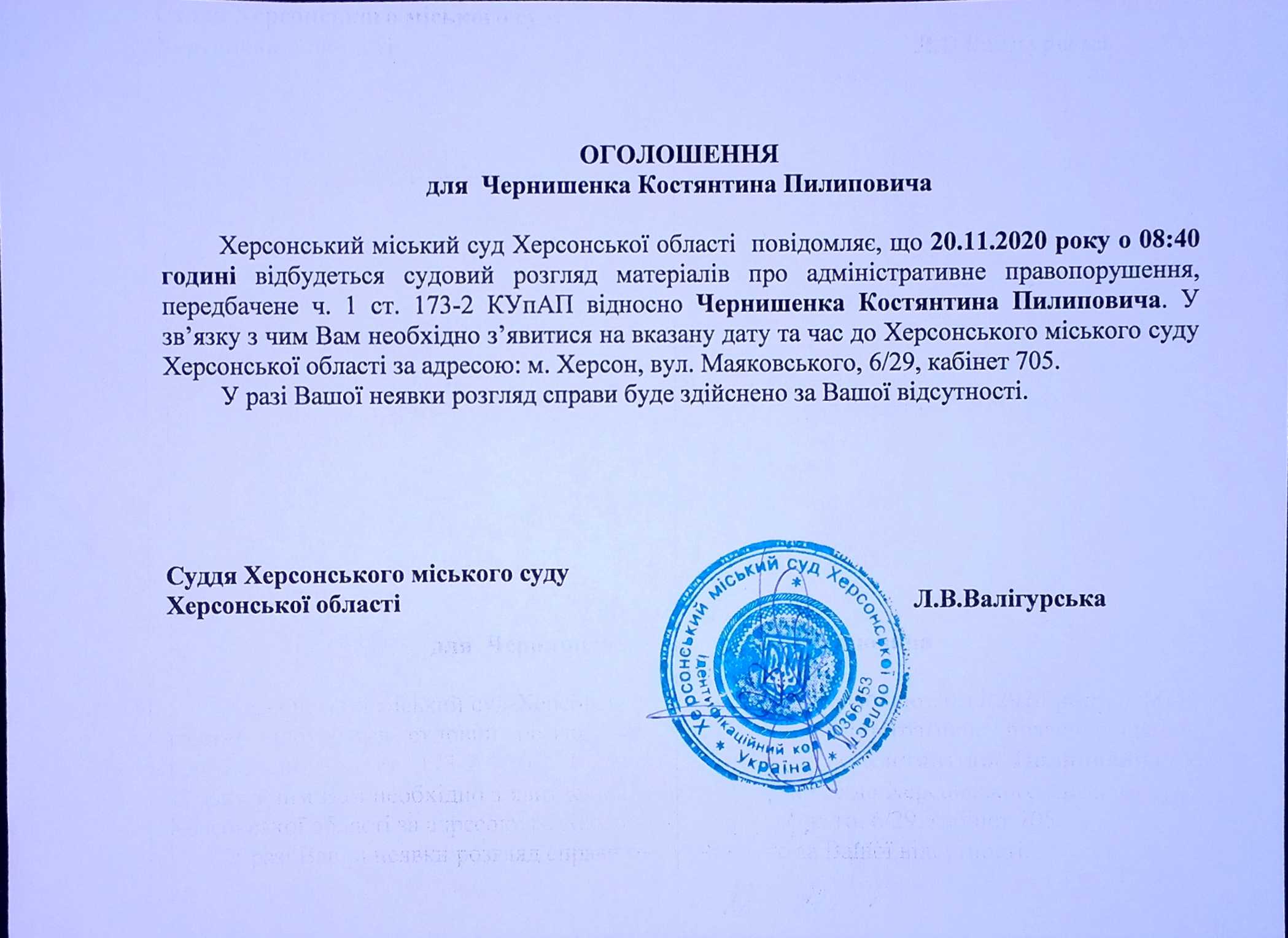 ОГОЛОШЕННЯ для Чернишева Костянтина Пилиповича