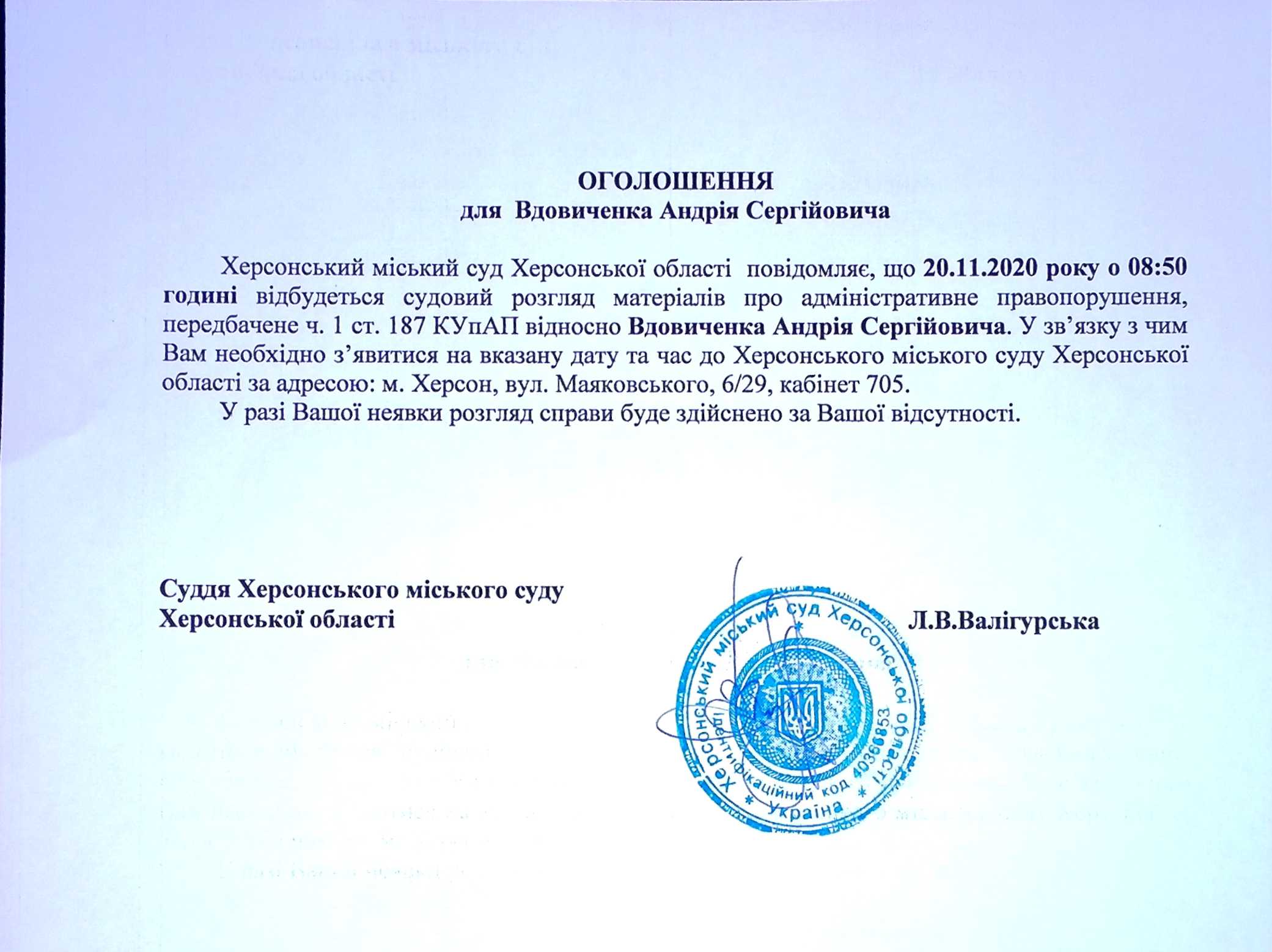 ОГОЛОШЕННЯ для Вдовиченка Андрія Сергійовича