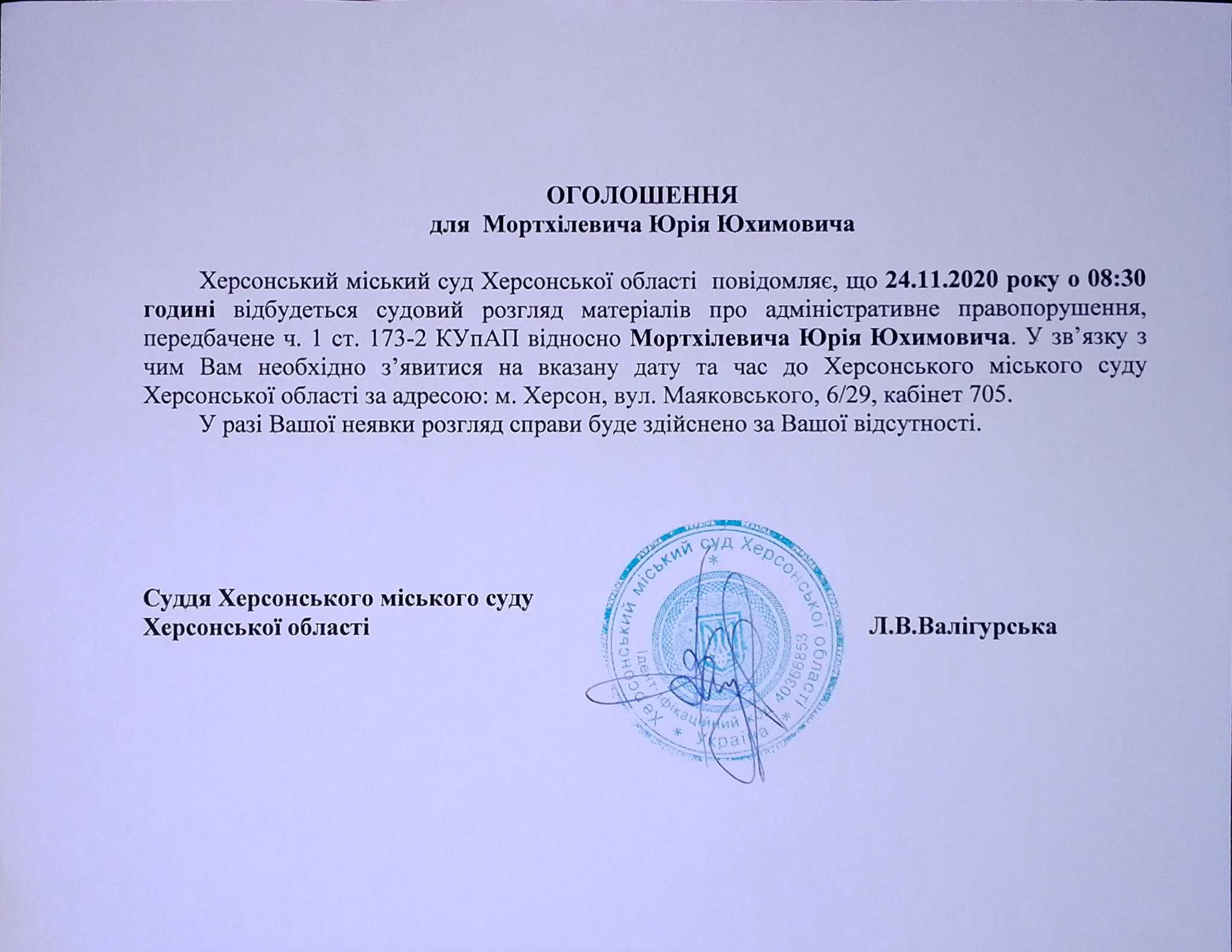 ОГОЛОШЕННЯ для Мортхілевича Юрія Юхимовича