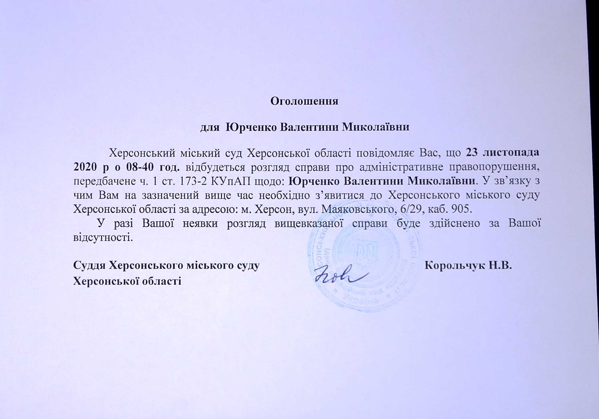 ОГОЛОШЕННЯ для Юрченко Валентини Миколаївни