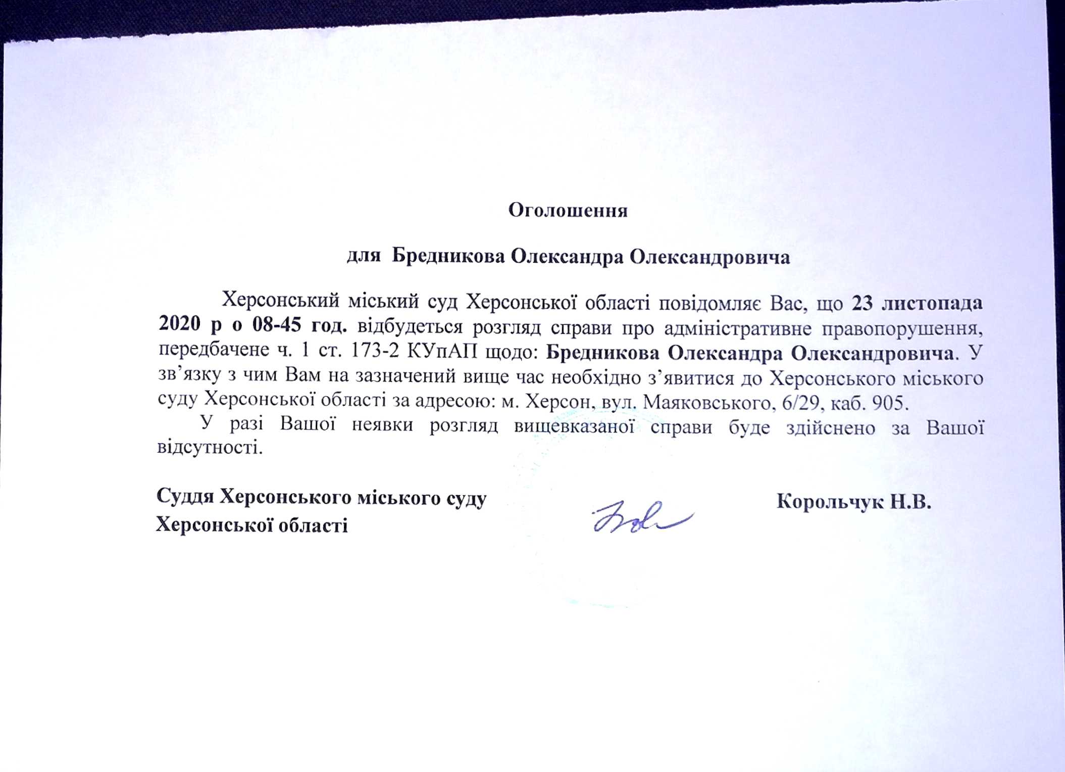 ОГОЛОШЕННЯ для Бредникова Олександра Олександровича