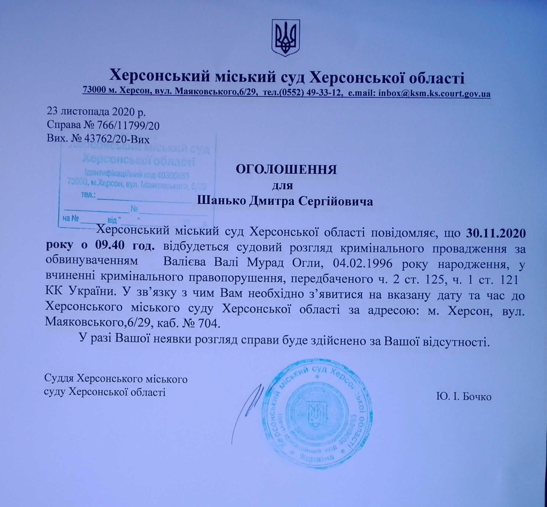 ОГОЛОШЕННЯ для Шанько Дмитра Сергійовича