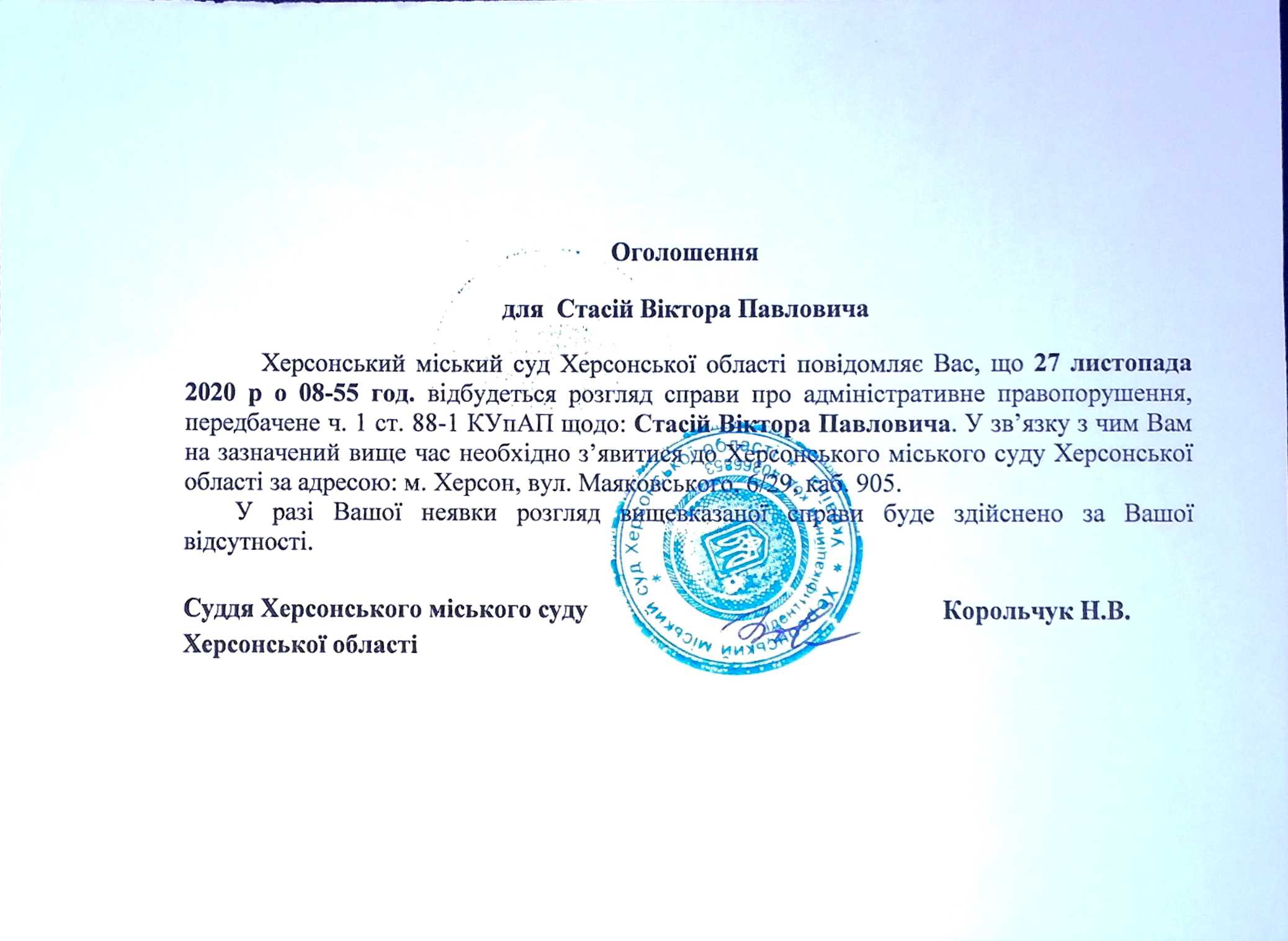 ОГОЛОШЕННЯ для Стасій Віктора Павловича