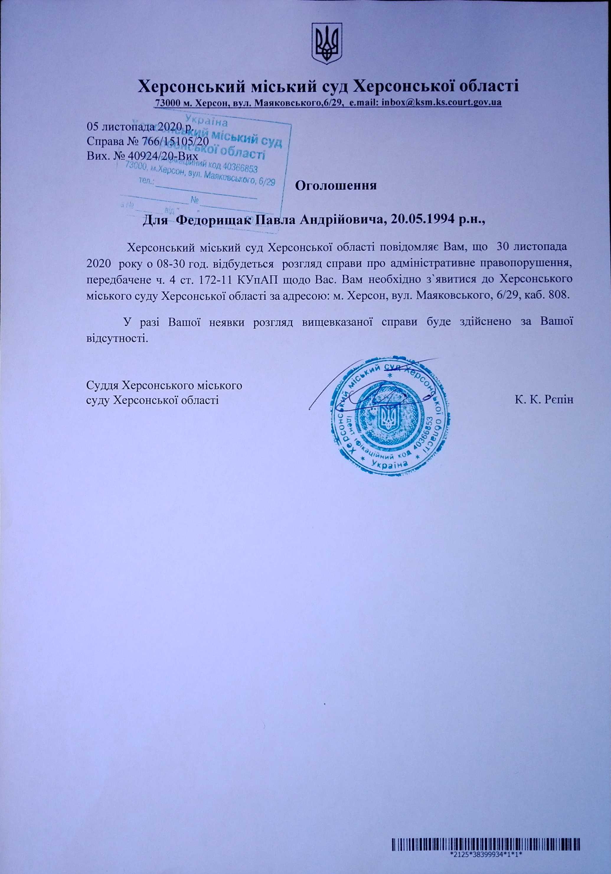 ОГОЛОШЕННЯ ПРО ВИКЛИК ДО СУДУ