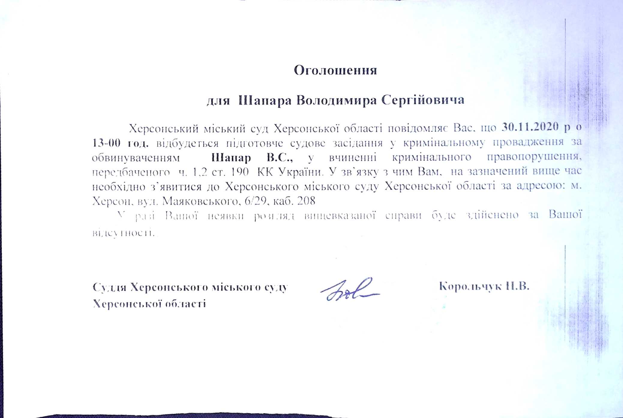 ОГОЛОШЕННЯ ПРО ВИКЛИК ДО СУДУ