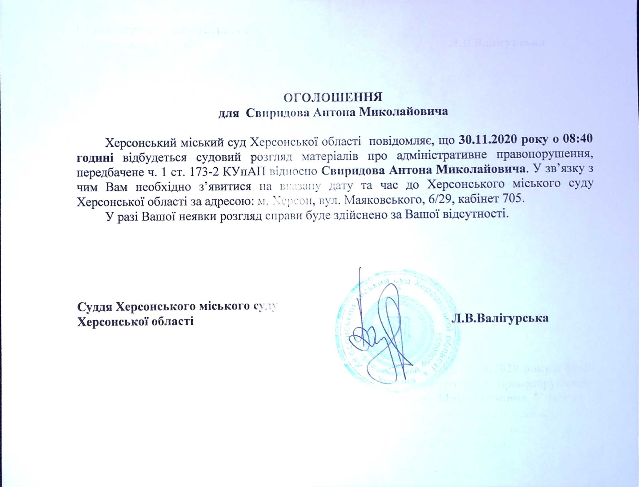 ОГОЛОШЕННЯ для Свиридова Антона Миколайовича