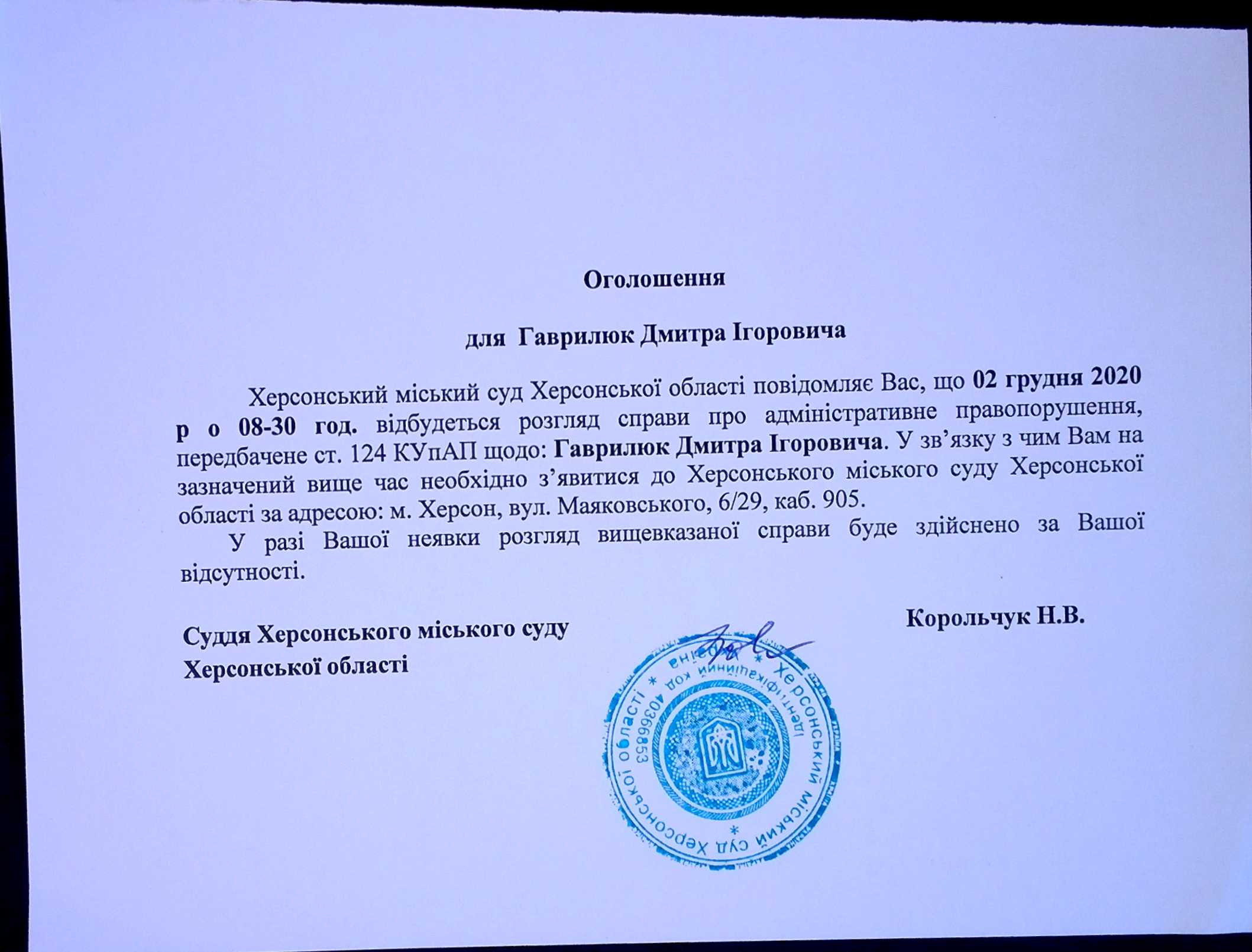 ОГОЛОШЕННЯ для Гаврилюка Дмитра Ігоровича