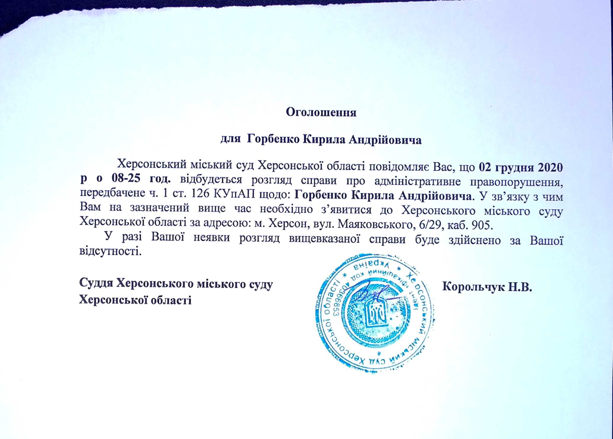 ОГОЛОШЕННЯ ПРО ВИКЛИК ДО СУДУ