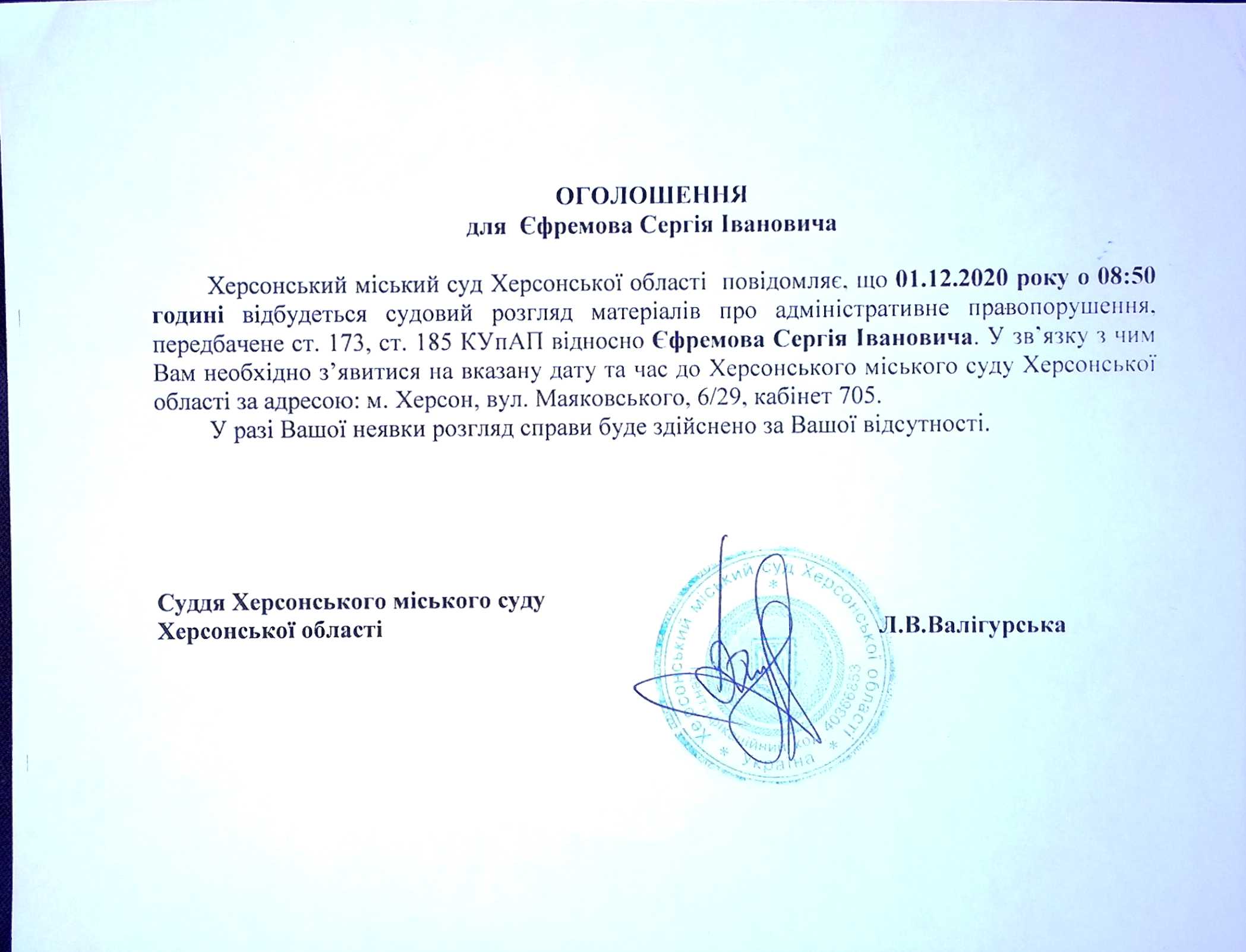 ОГОЛОШЕННЯ для Єфремова Сергія Івановича
