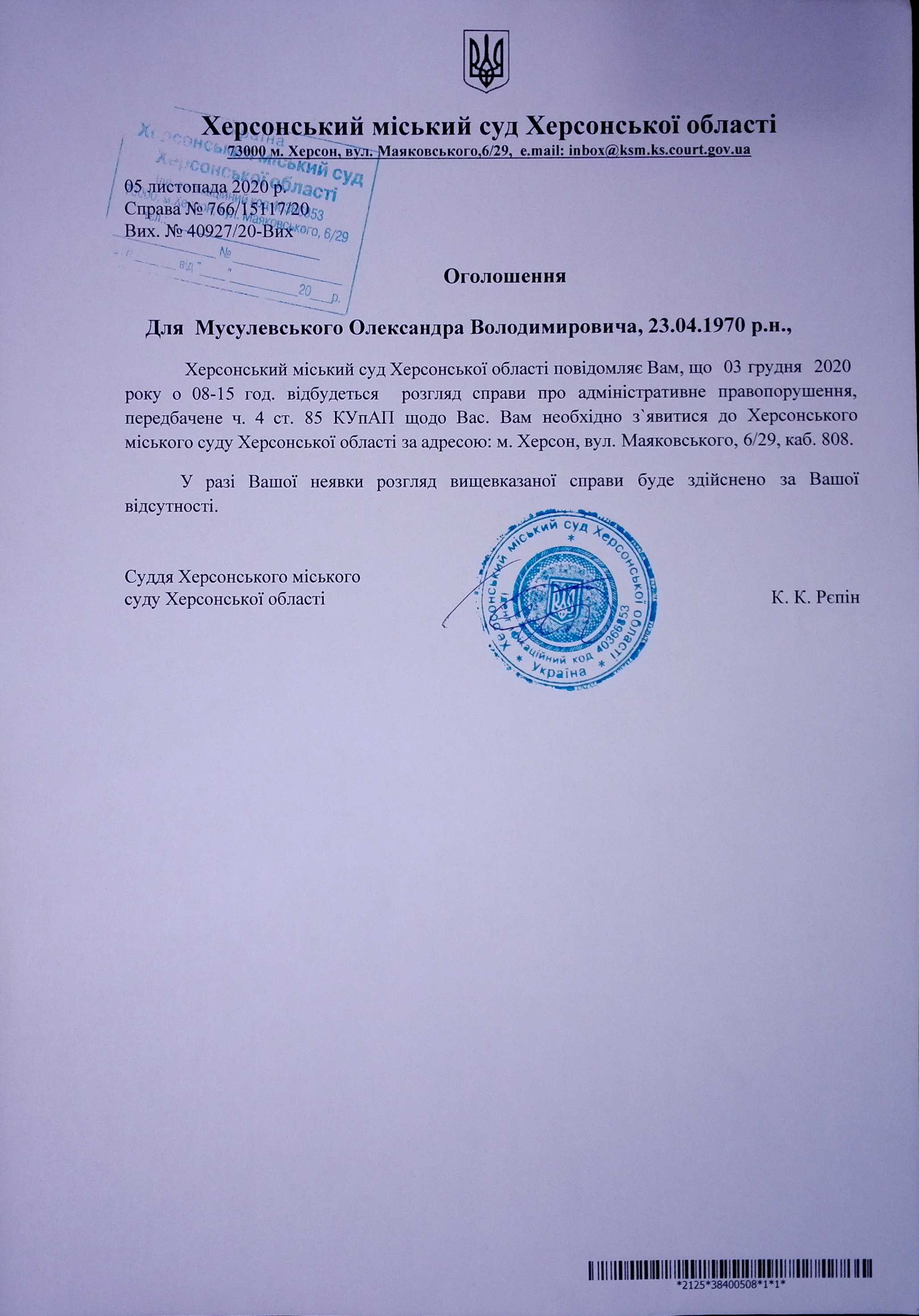 ОГОЛОШЕННЯ для Мусулевського Олександра Володимировича
