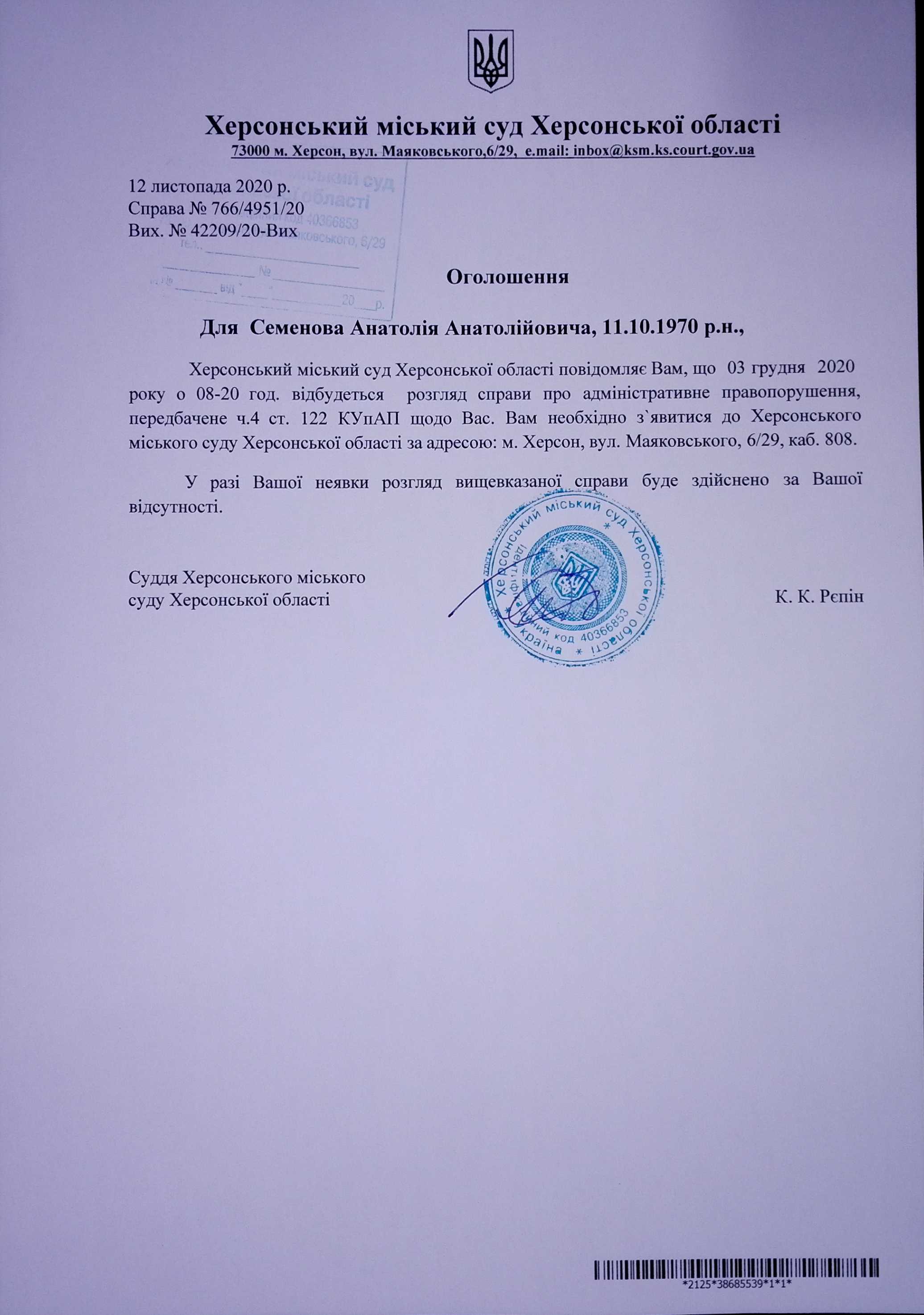 ОГОЛОШЕННЯ для Семенова Анатолія Анатолійовича