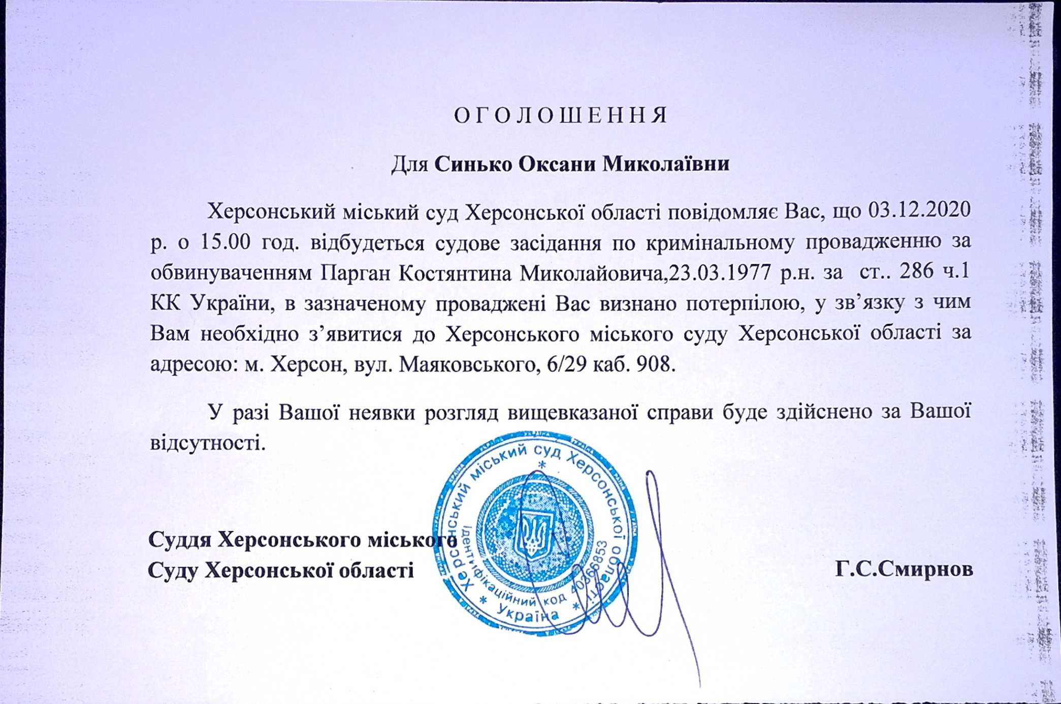 ОГОЛОШЕННЯ ПРО ВИКЛИК ДО СУДУ