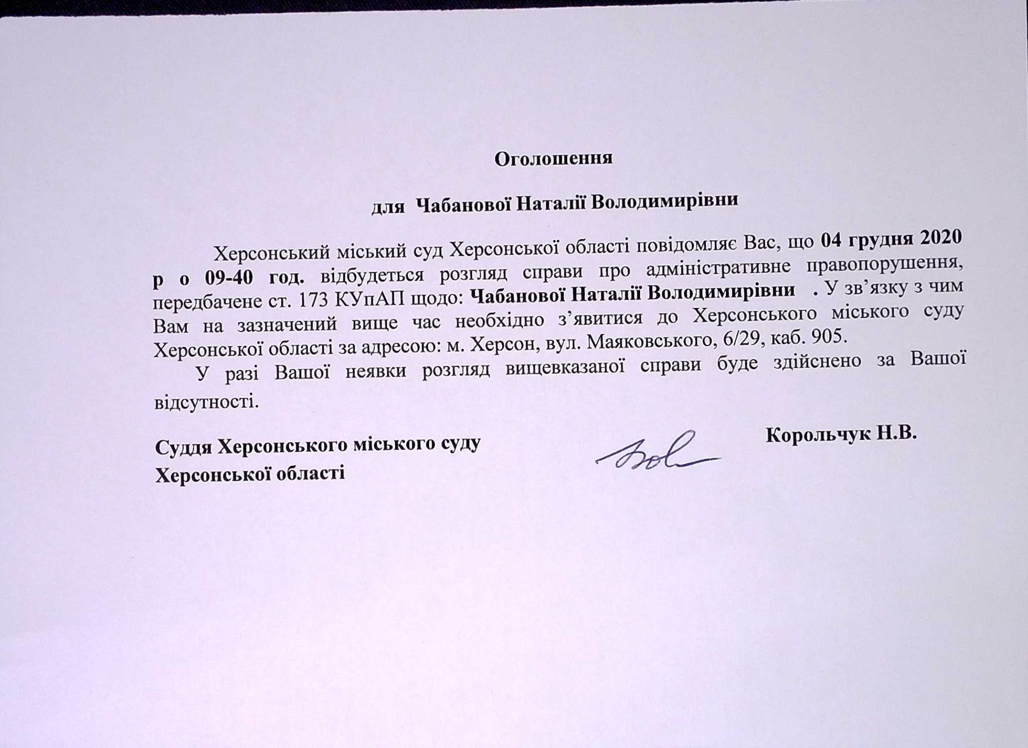 ОГОЛОШЕННЯ для Чабанової Наталії Володимирівни