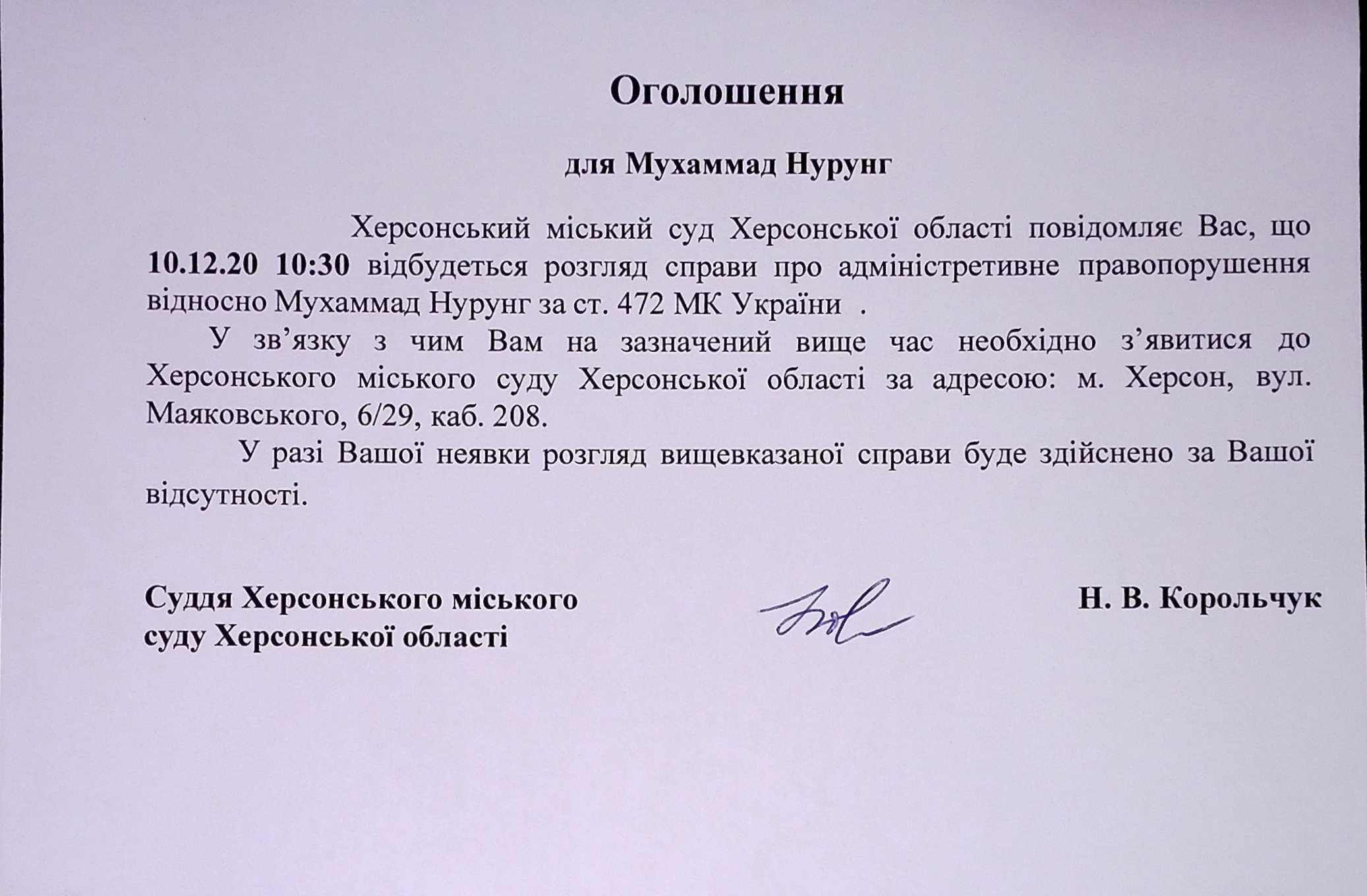 ОГОЛОШЕННЯ для Мухаммад Нурунг