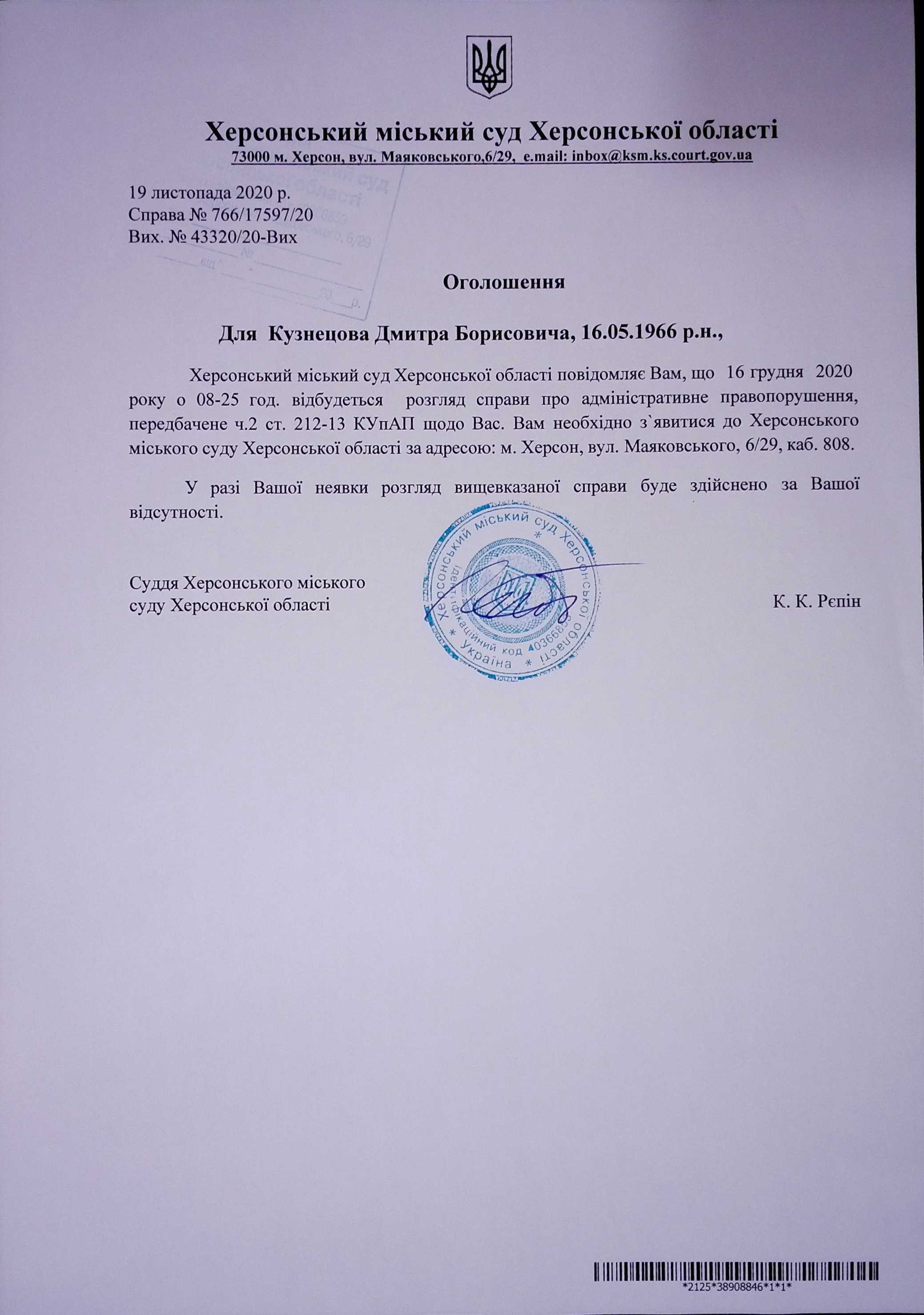 ОГОЛОШЕННЯ для Кузнецова Дмитра Борисовича