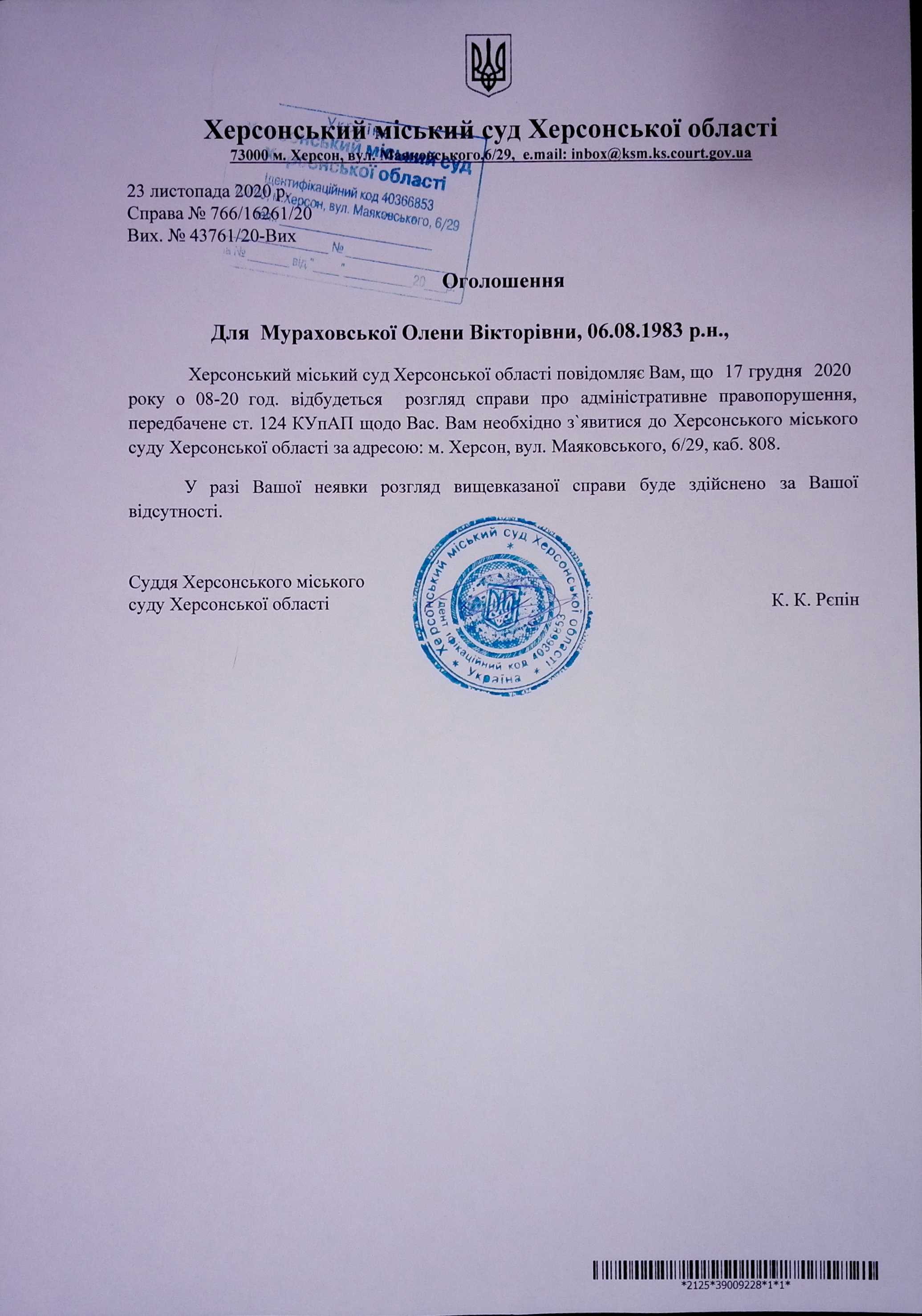 ОГОЛОШЕННЯ для Мураховської Олени Вікторівни