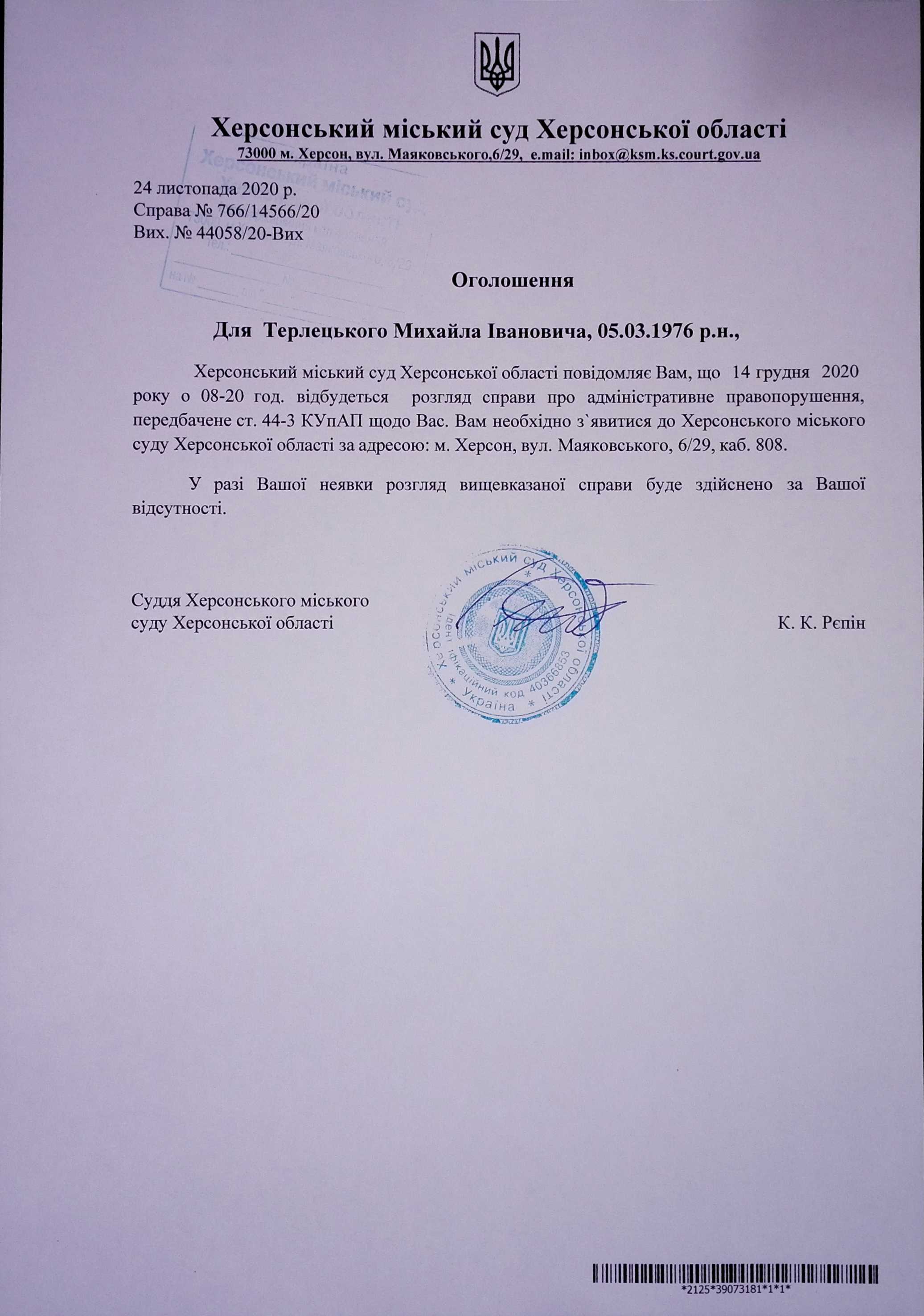 ОГОЛОШЕННЯ для Терлецького Михайла Івановича