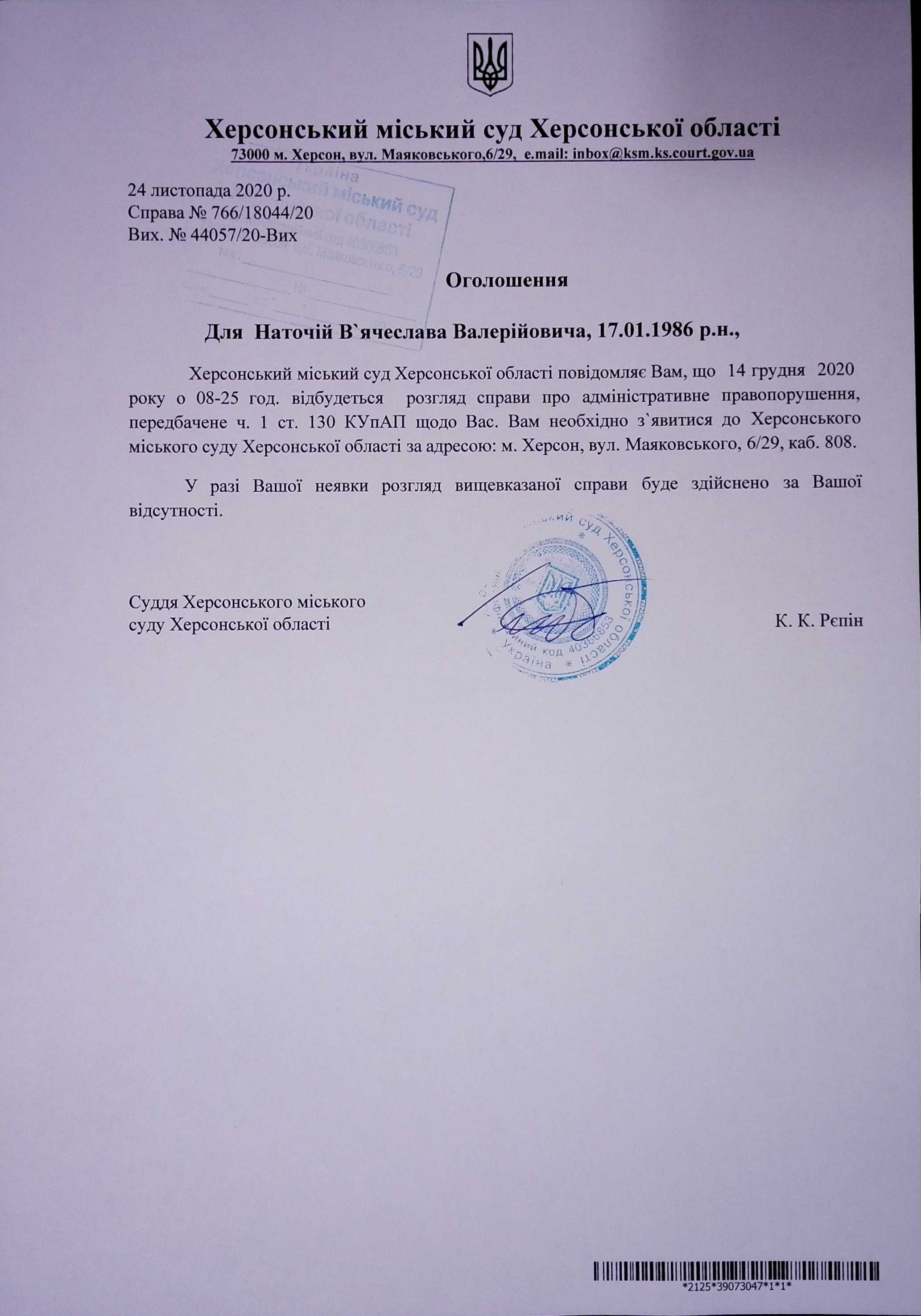 ОГОЛОШЕННЯ ПРО ВИКЛИК ДО СУДУ