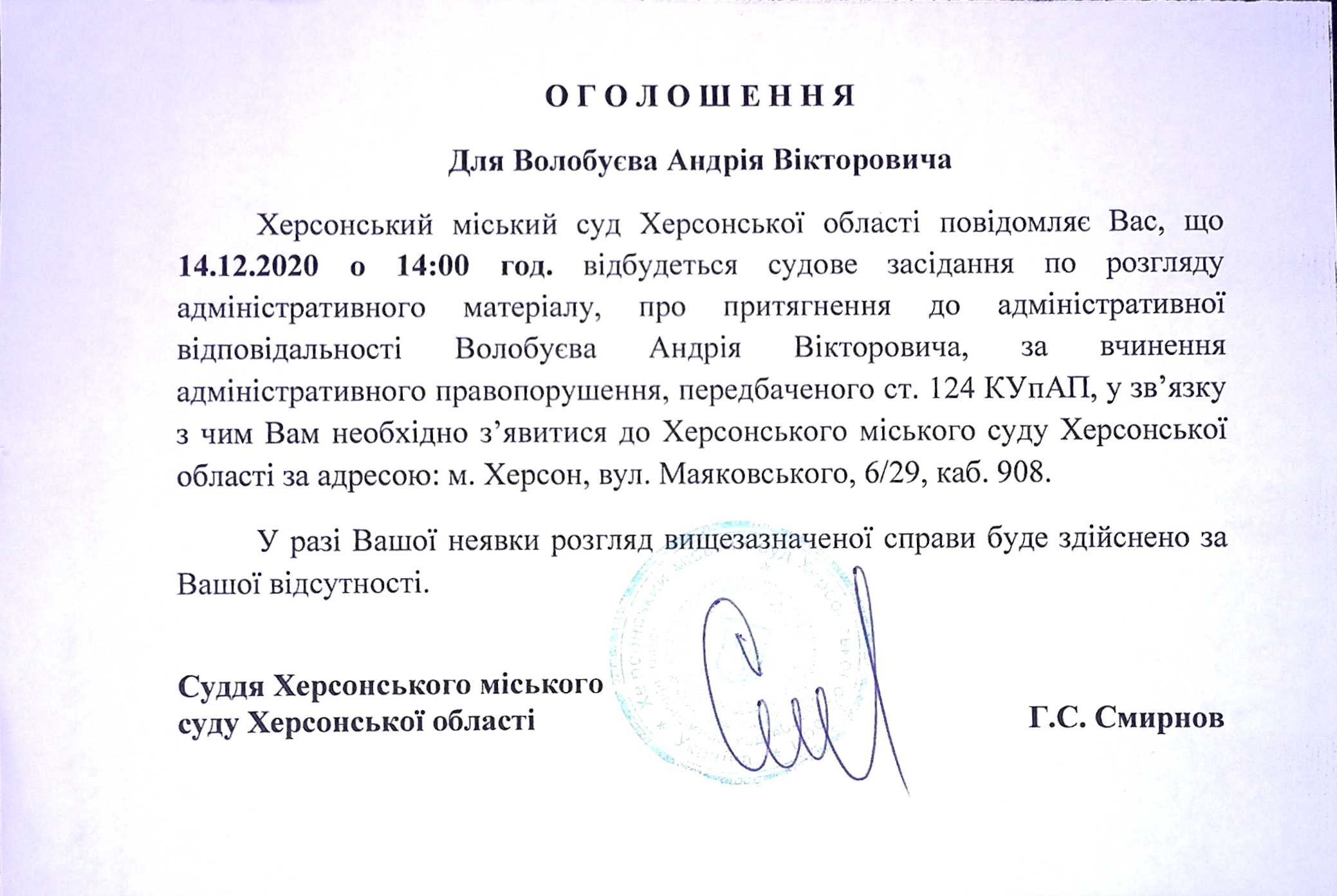 ОГОЛОШЕННЯ для Волобуєва Андрія Вікторовича