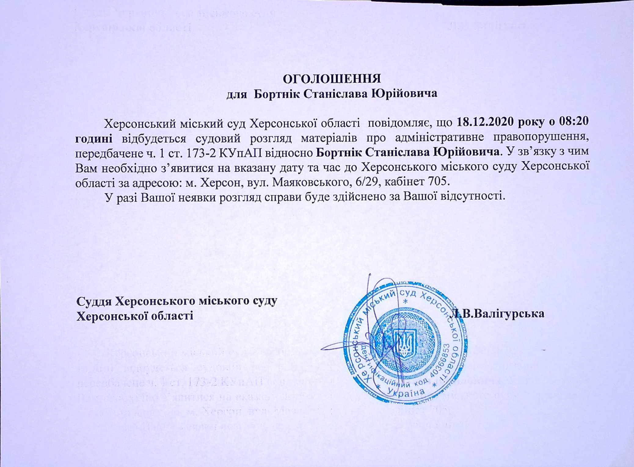 ОГОЛОШЕННЯ для Бортніка Станіслава Юрійовича