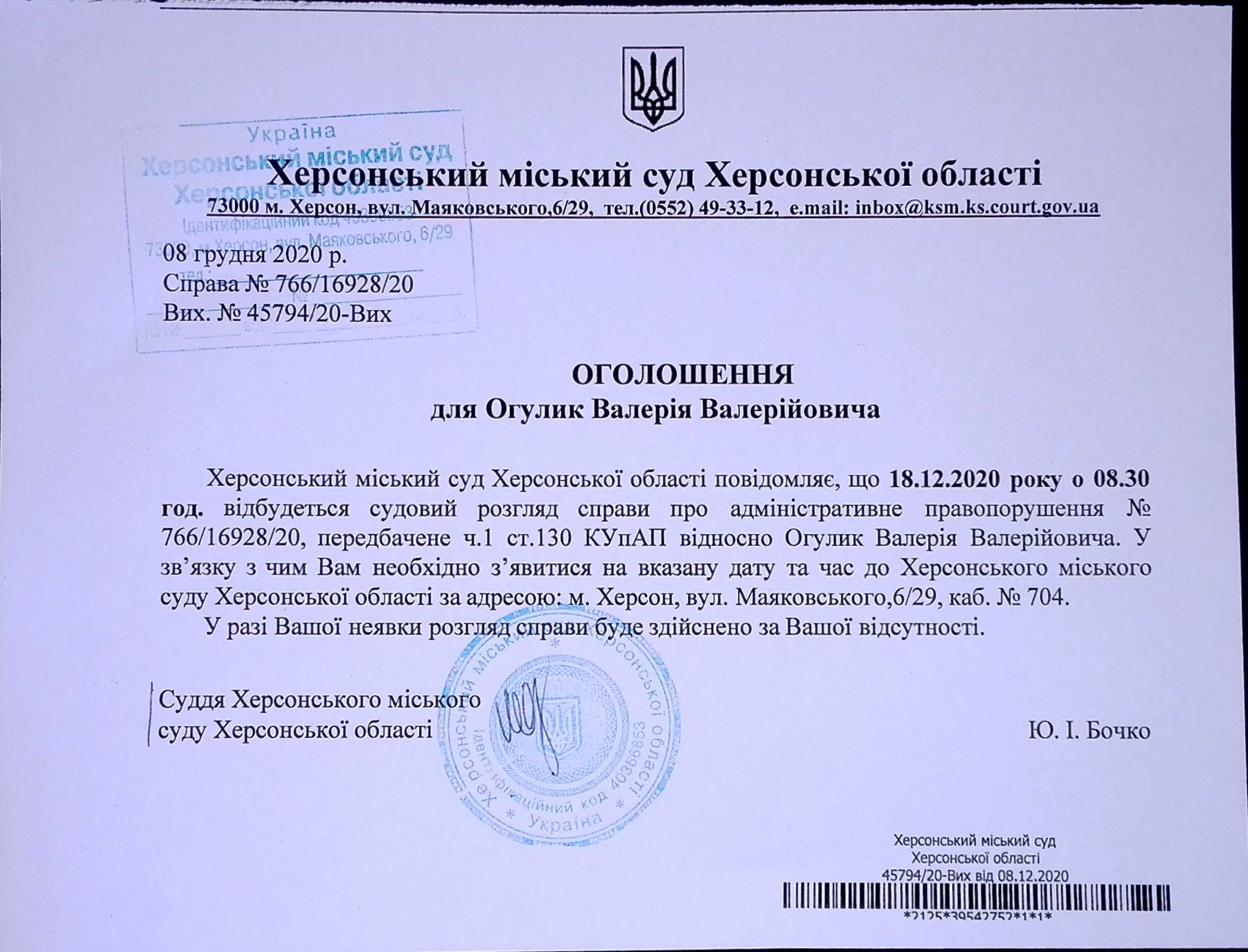 ОГОЛОШЕННЯ для Огулик Валерія Валерійовича