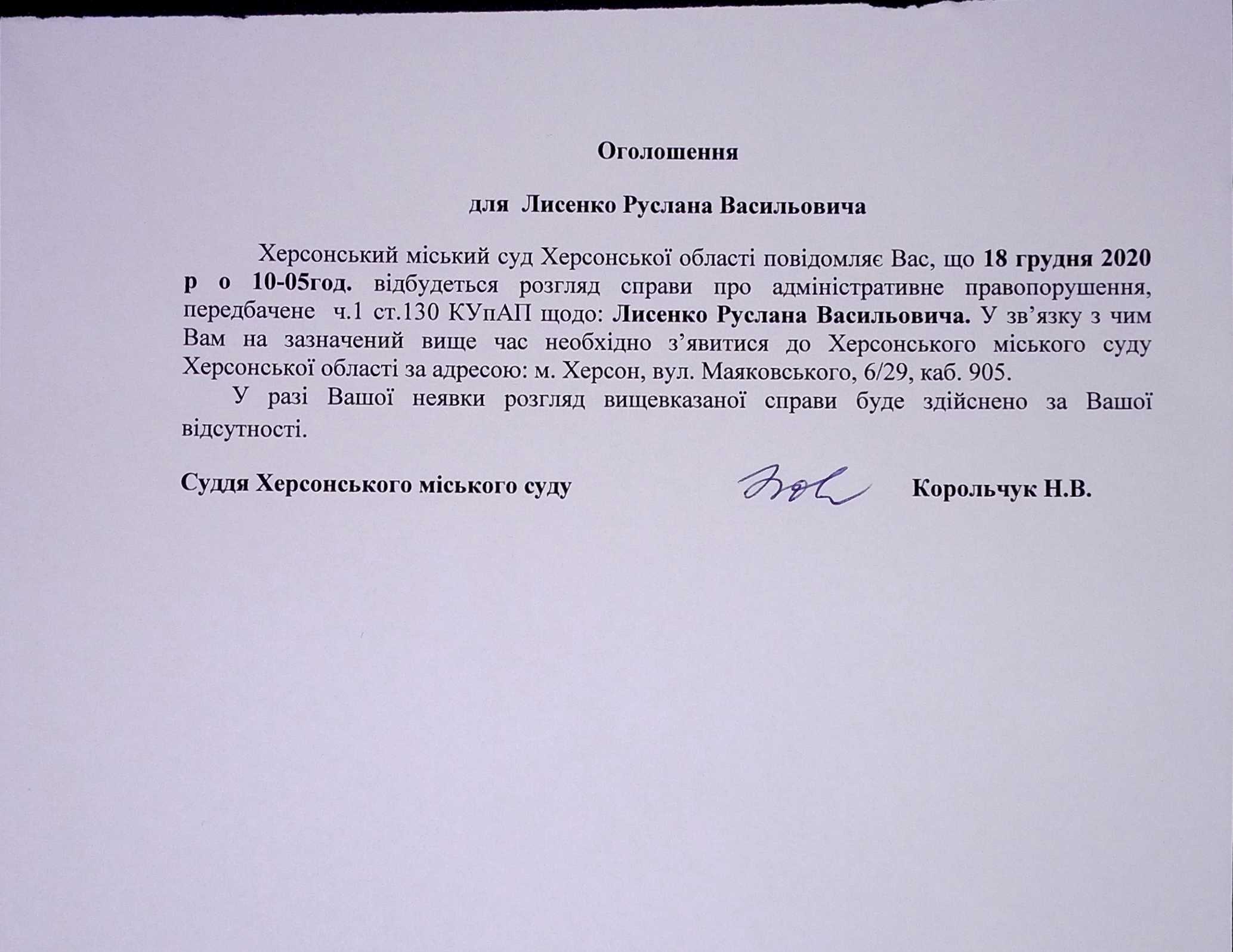 ОГОЛОШЕННЯ для Лисенко Руслана Васильовича